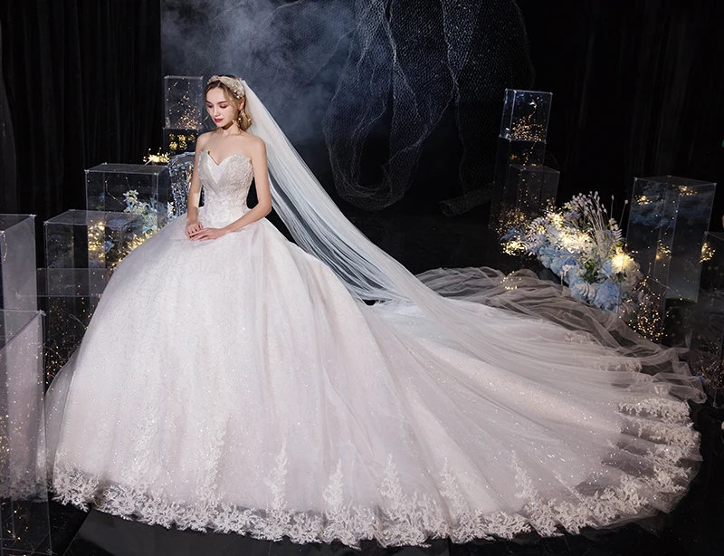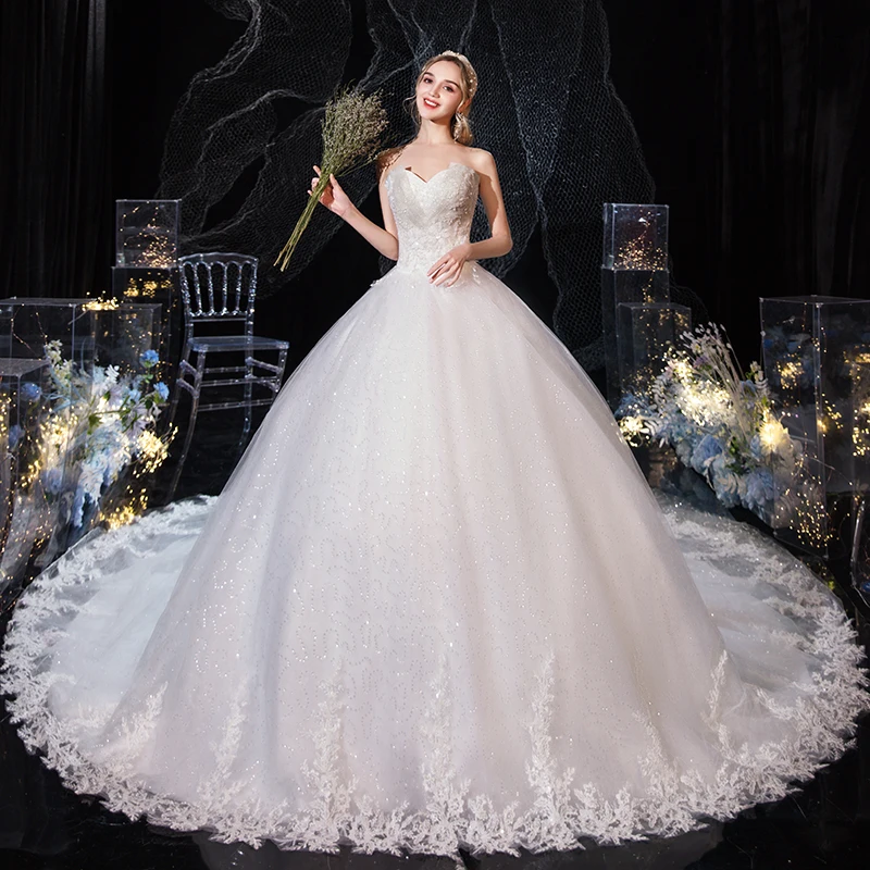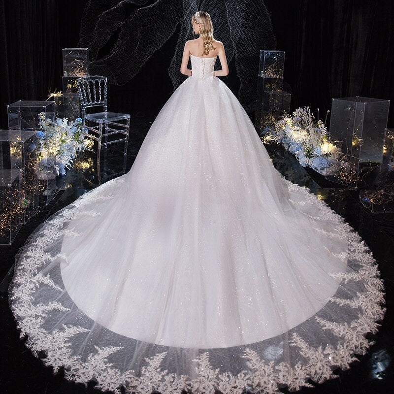 Runhufu Dress 2023 New Luxury Strapless Wedding Dress With Train Princess Bling Bling Vestido De Noiva Plus Size