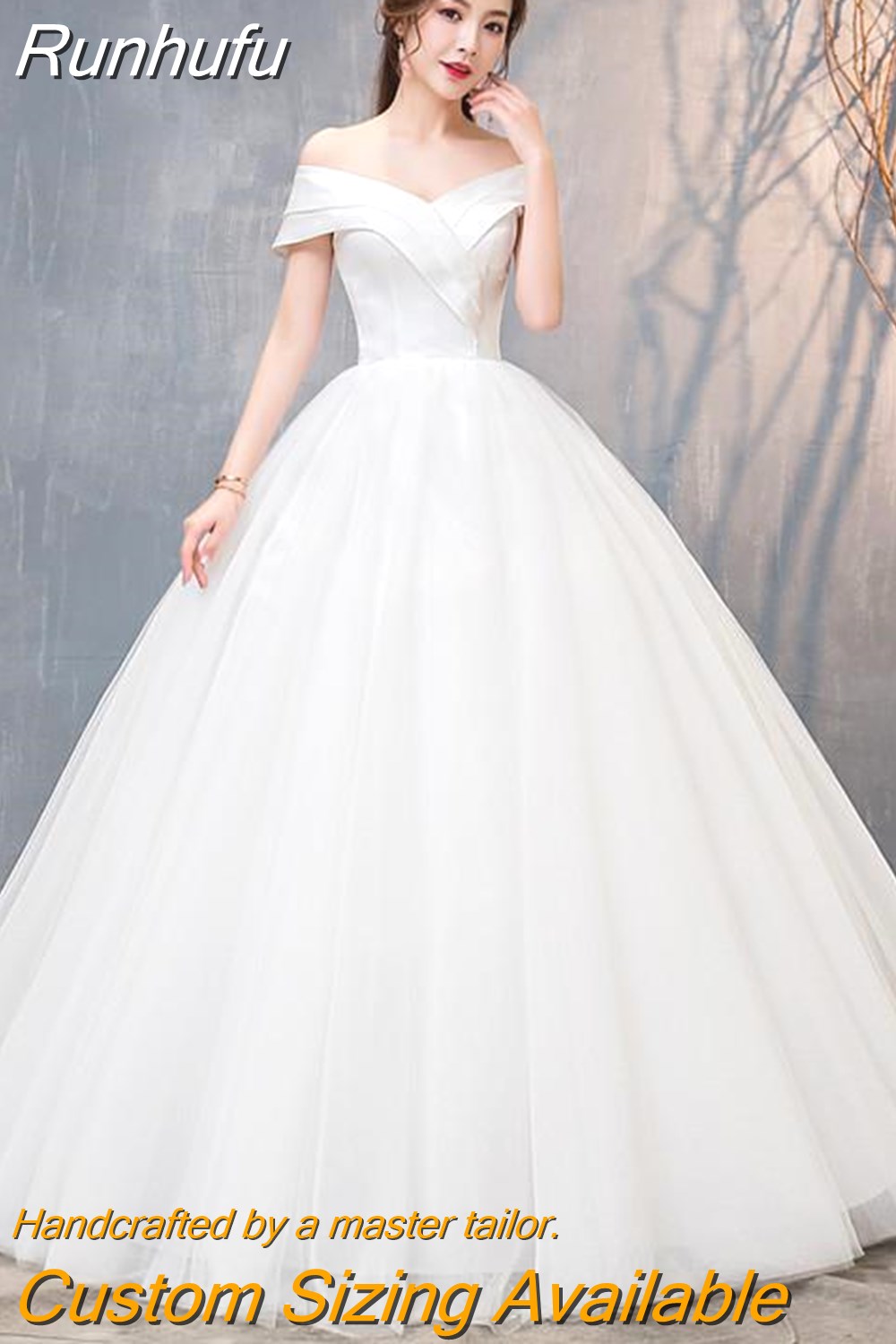 Runhufu Dress 2023 New Sexy V-neck Lace Up Ball Gown Off The Shoulder Simple Wedding Dresses Vestido De Noiva