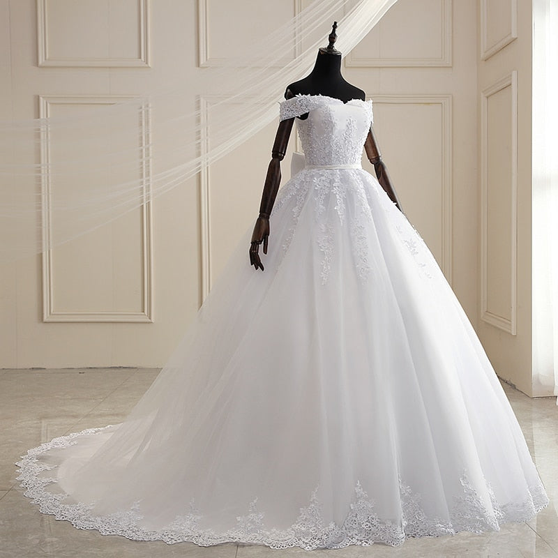 runhufu Dress 2023 The Elegant Boat Neck Ball Gown Off The Shoulder Princess Luxury Lace Embroidery Wedding Dresses