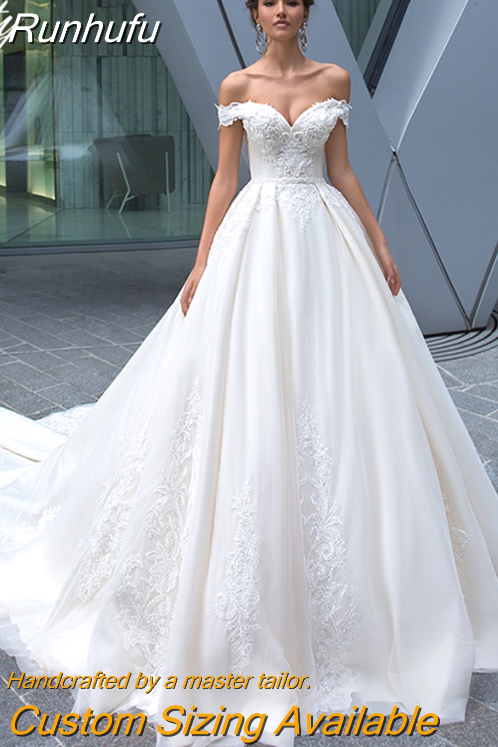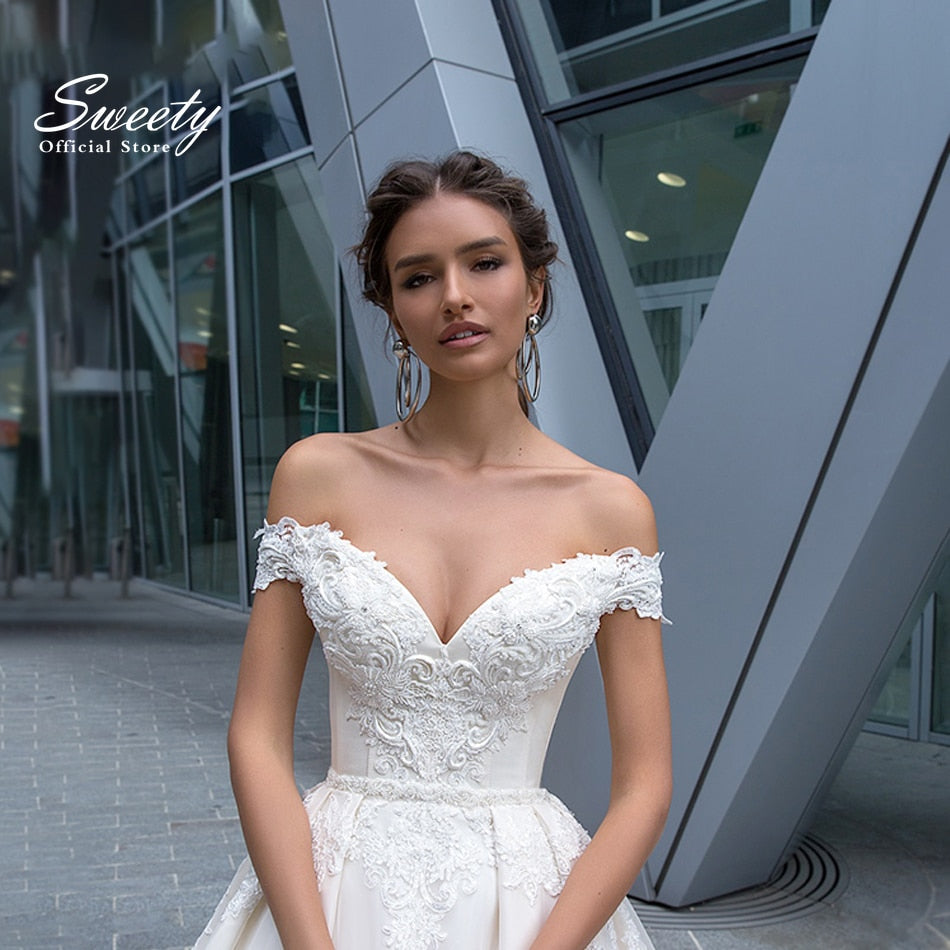 Runhufu Dress With Crystal Off The Shoulder Tulle With Embroidery Robe Mariée Satin Sweetheart Sleeveless Bride Back Zipper