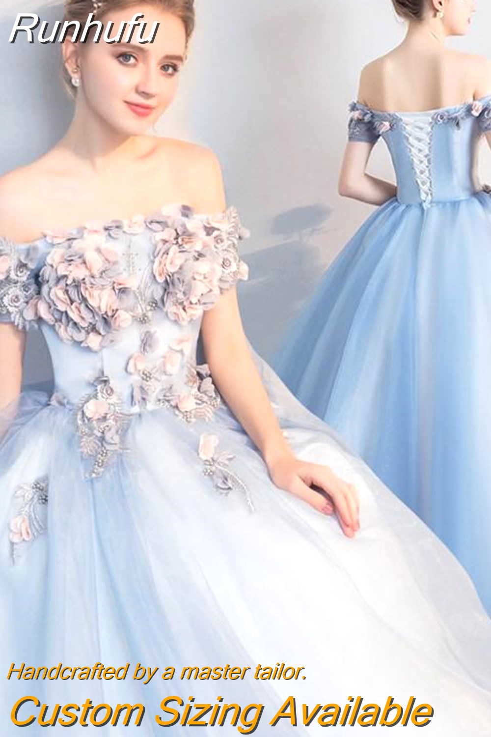 Runhufu Dresses 2023 New The Party Prom Short Sleeve Off The Shoulder Ball Gown Sweet Floral Print Vestidos Debutantes 2