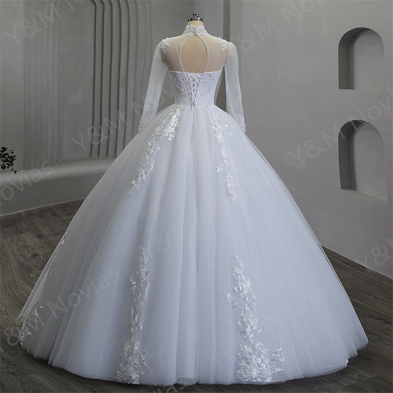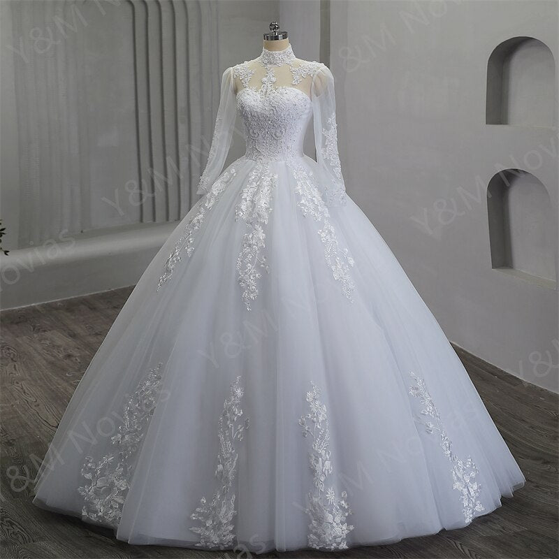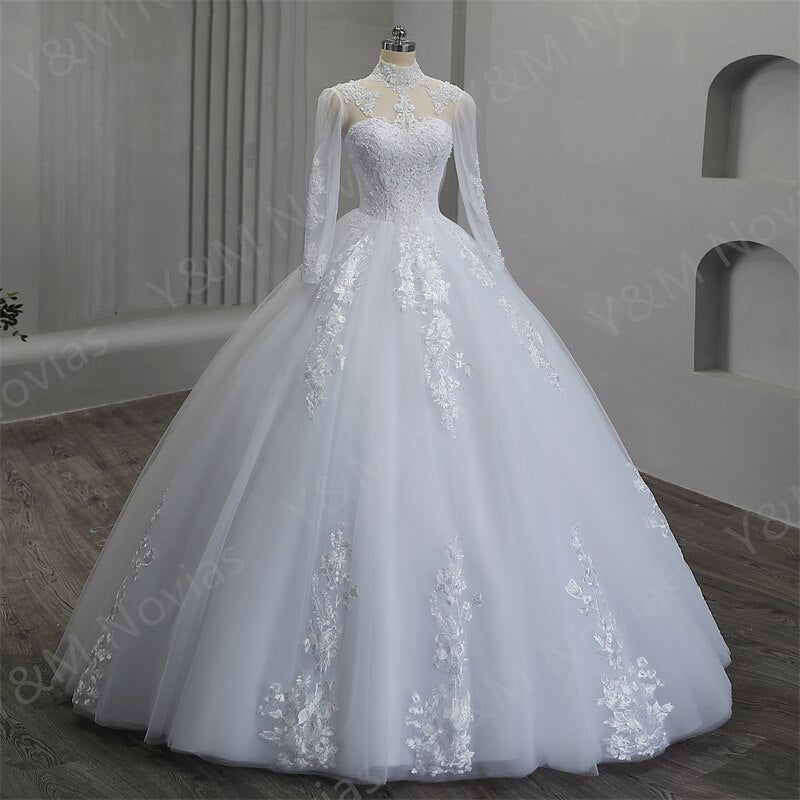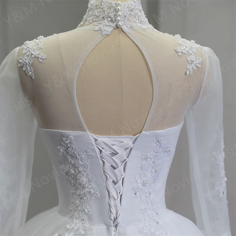 runhufu Elegant Luxury Pearls High Neck Wedding Dress 2023 Vintage Plus Size White Iovry Ball Gown Vestido De Noiva Real Photo