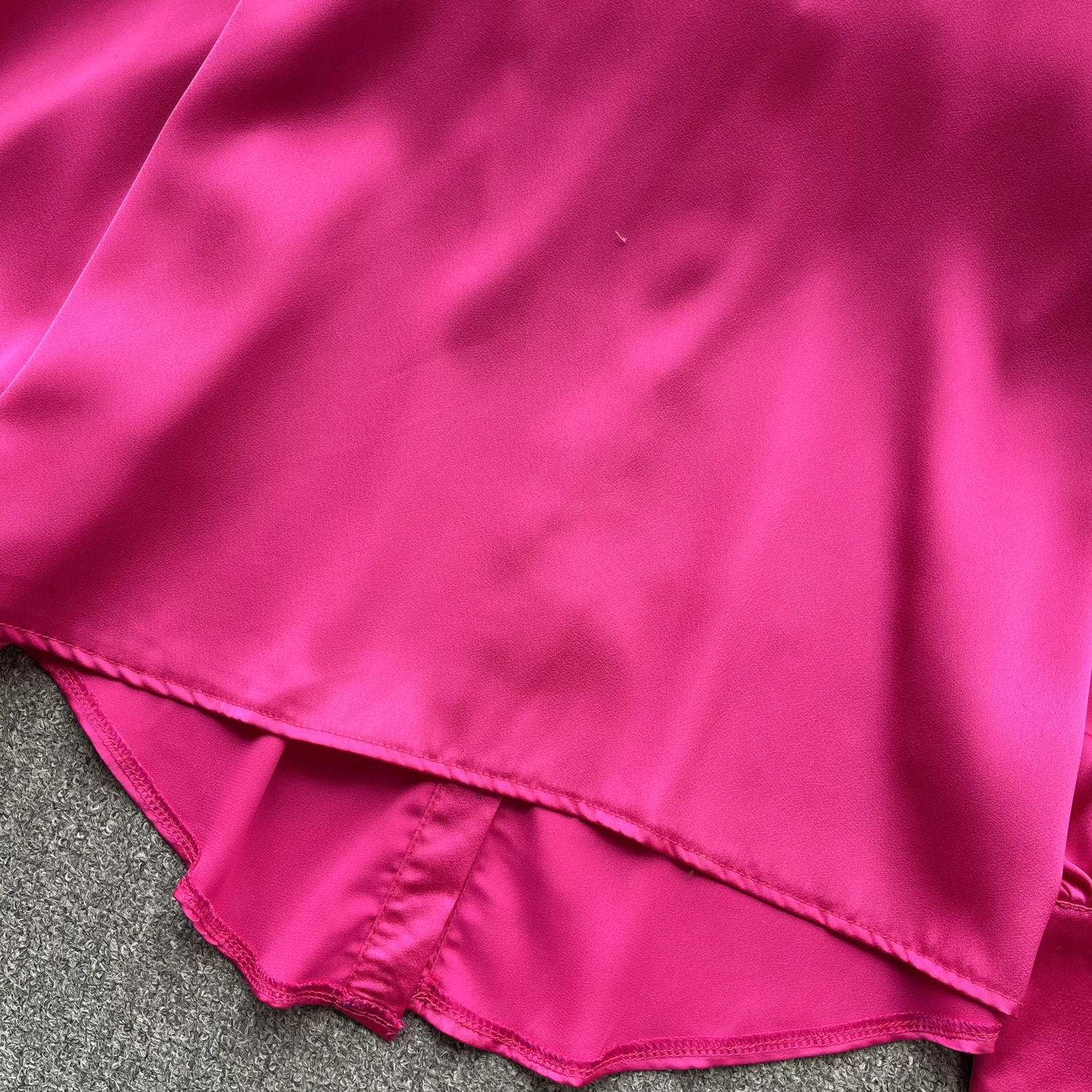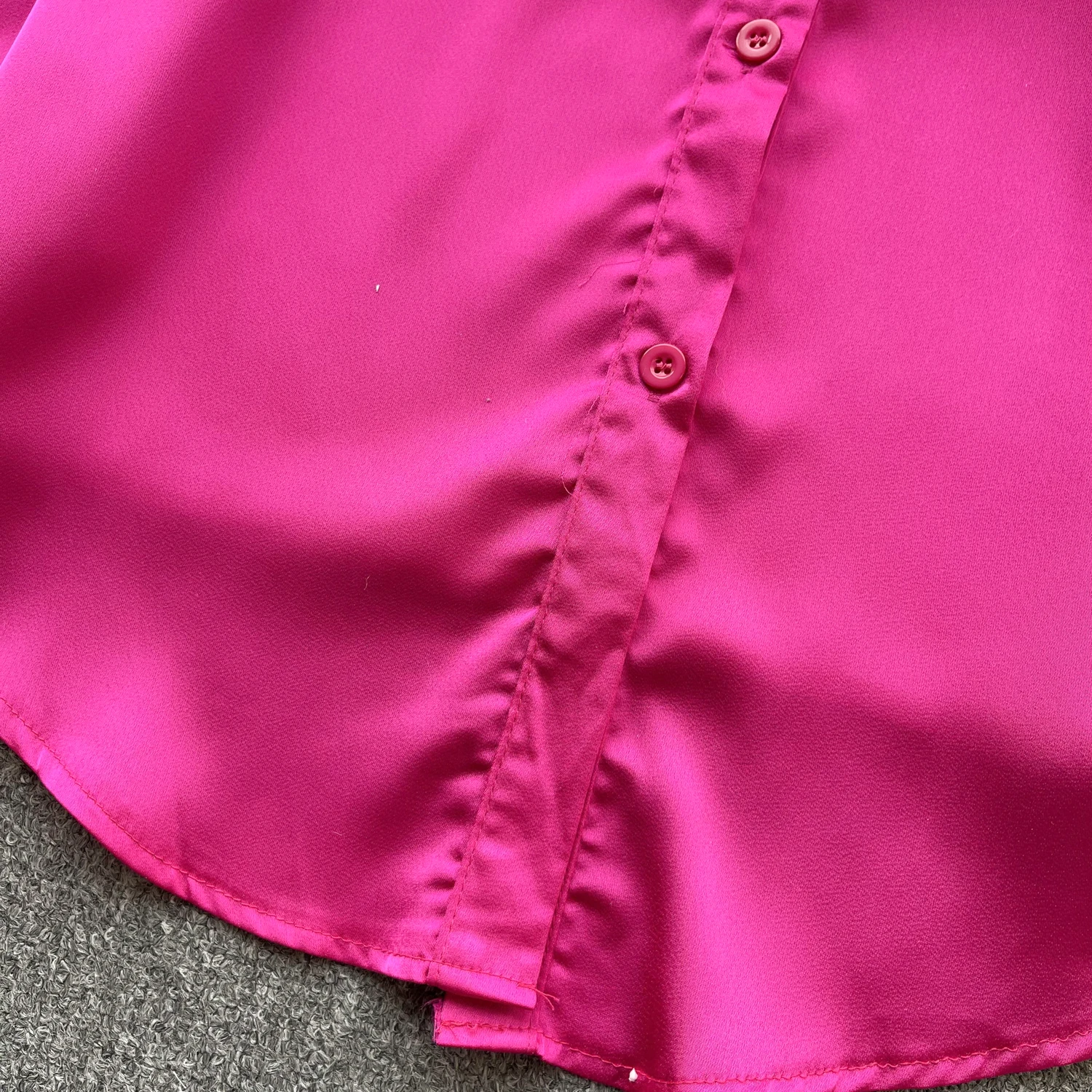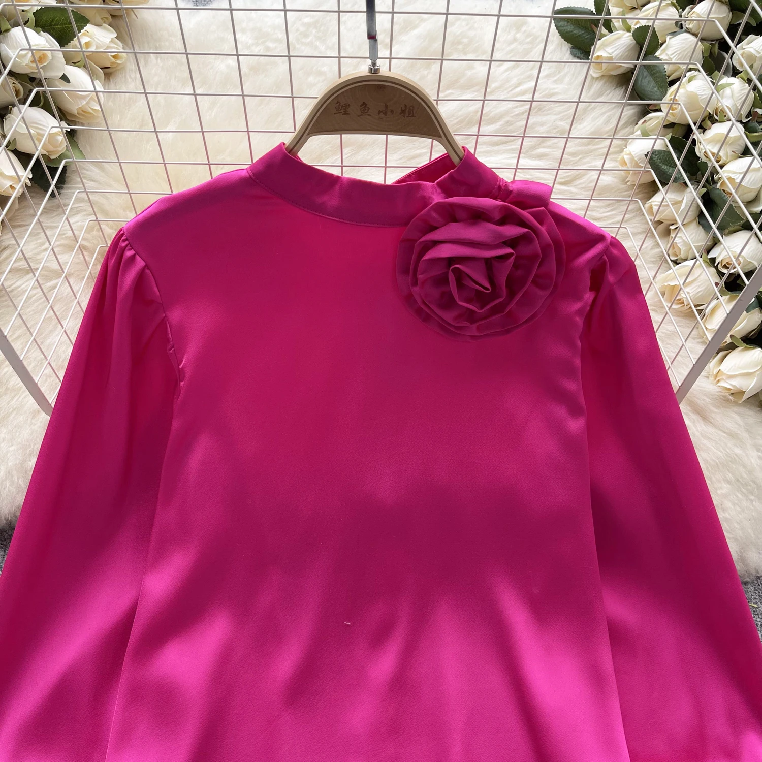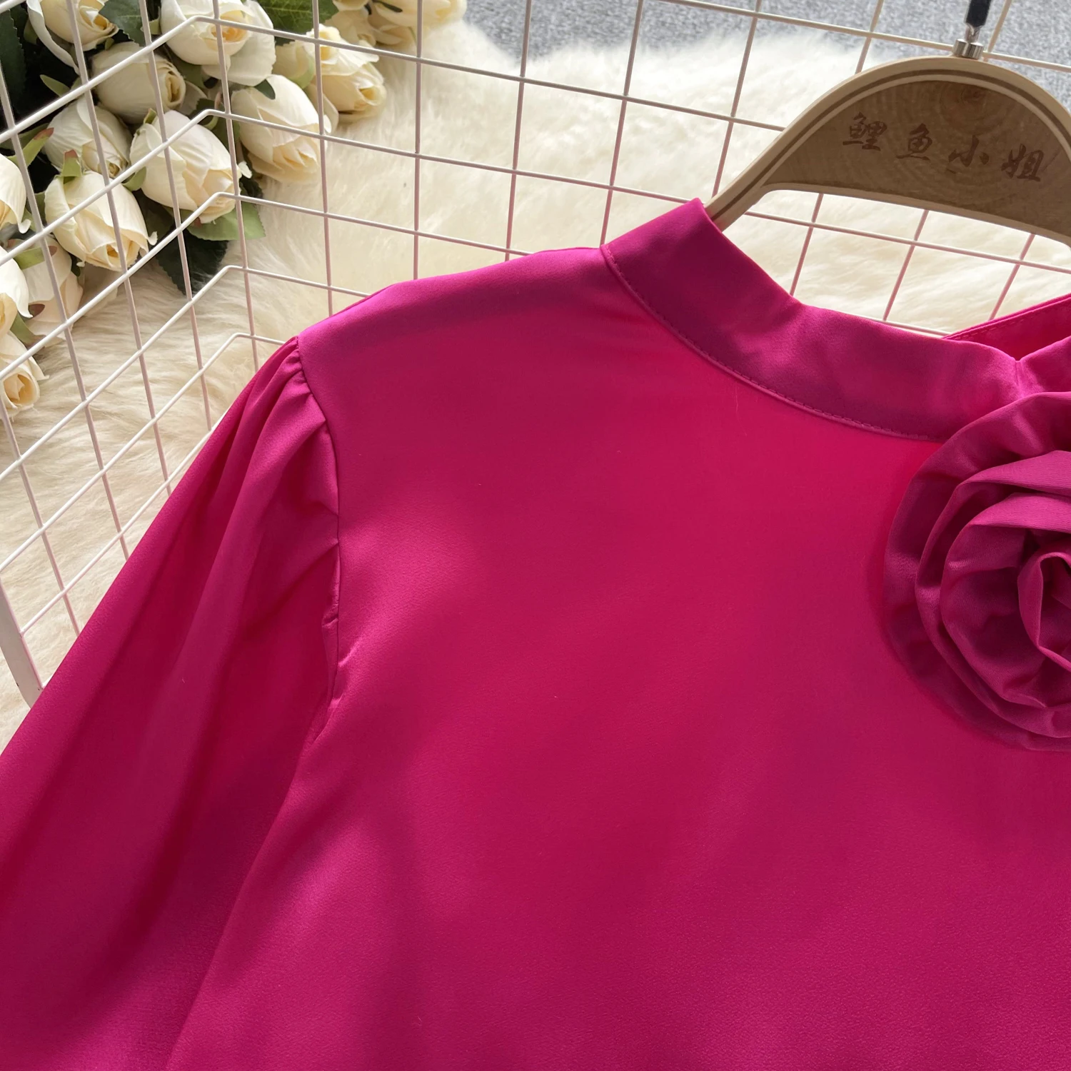 Runhufu French Senior Satin Loose Shirt Women Elegant Long Sleeve 3D Flower Spring Top Fashion Single Breasted Solid OL Blouse