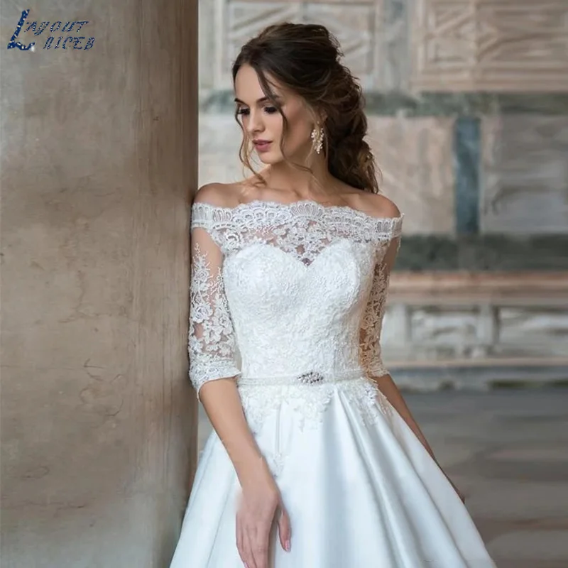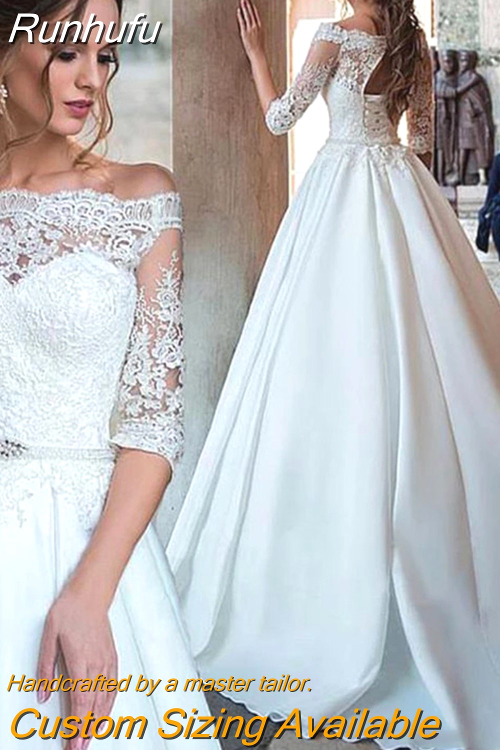 Runhufu Half Sleeve Wedding Dresses Off The Shoulder Elegant Wedding Ball Gowns Lace Up Vestido De Novia Bride Dresses For Women