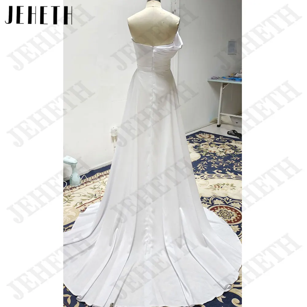 Runhufu High Split Wedding Dresses Women One Shoulder Sexy Backless Bride Gown Satin Simple Charming Vestido De Novia Sweep Train