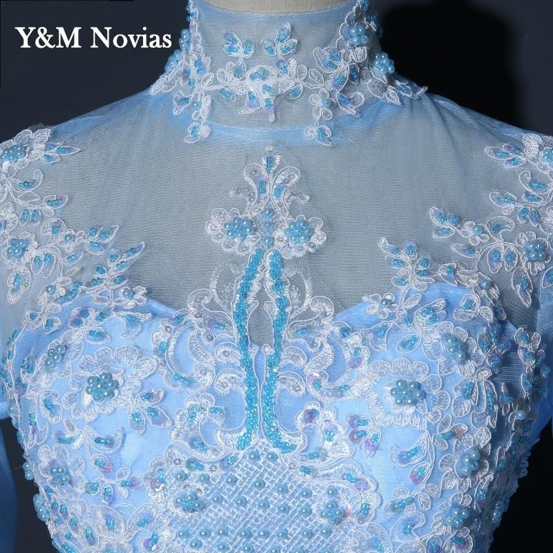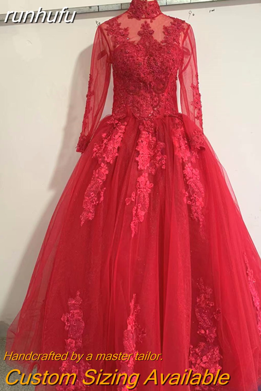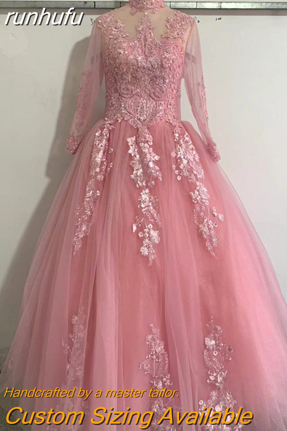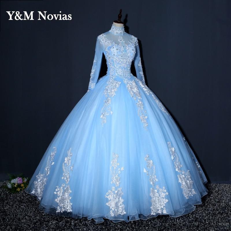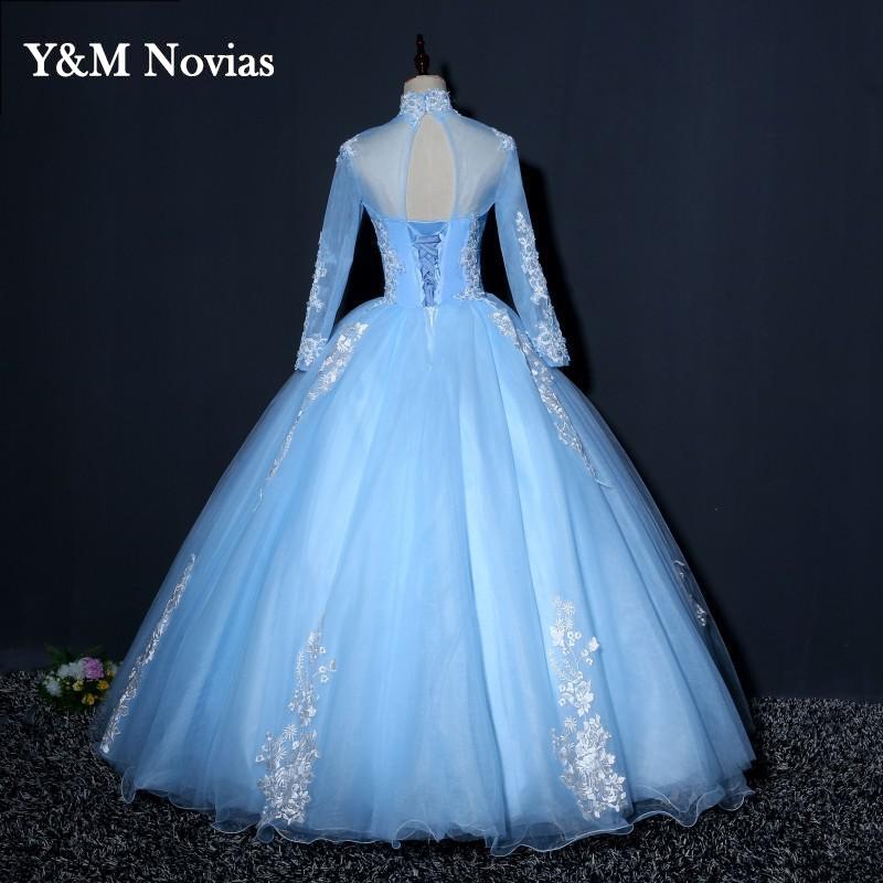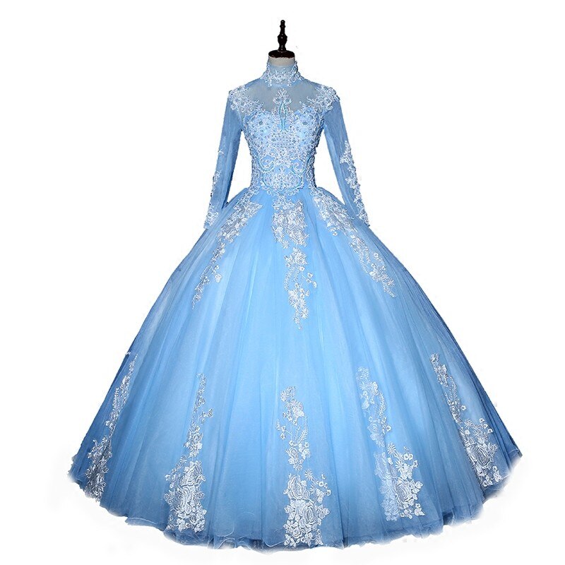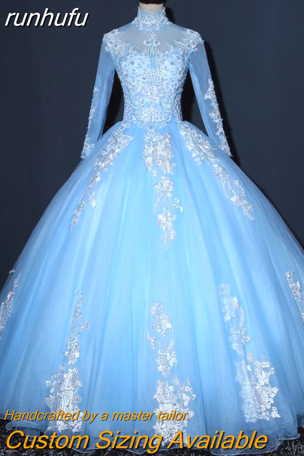 runhufu Illusion Sky Blue Quinceanera Dress Floor Length Sweet High Neck For Party Luxury Embroidery Ball Gown Prom Dress Plus Size