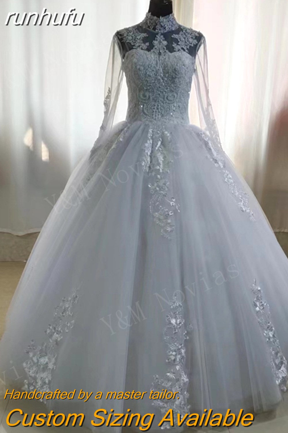 Runhufu NICEB 3/4 Lace Sleeves Wedding Dresses With Pocket Satin Sweep Train свадебное платье Bridal Ball Gowns Simple Customized