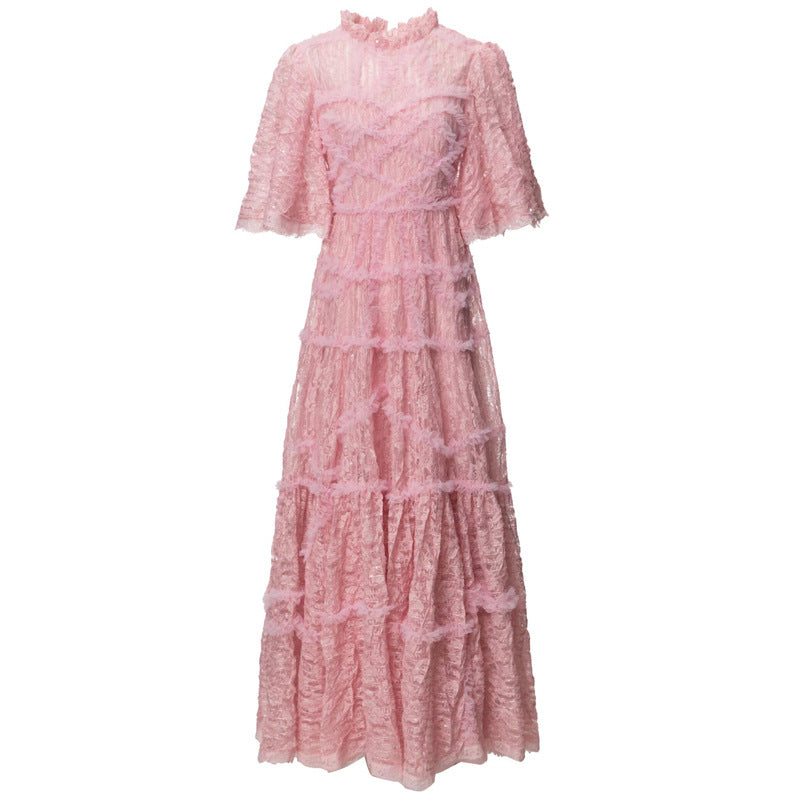 runhufu Industry Lianglid Leafs Pink-Senage Princess Style Dresses Summer Women's New 2024