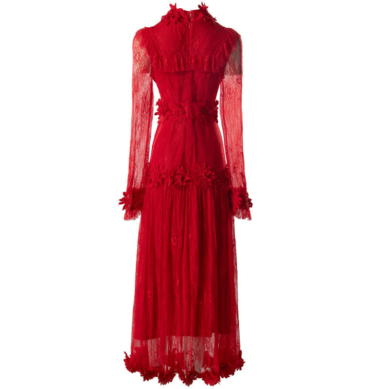 runhufu Industry Three-Dimensional Flower Collared Long-Sleeved Lace-Bum Dress Princess Dress Autumn And Winter Women's Dress New 2024