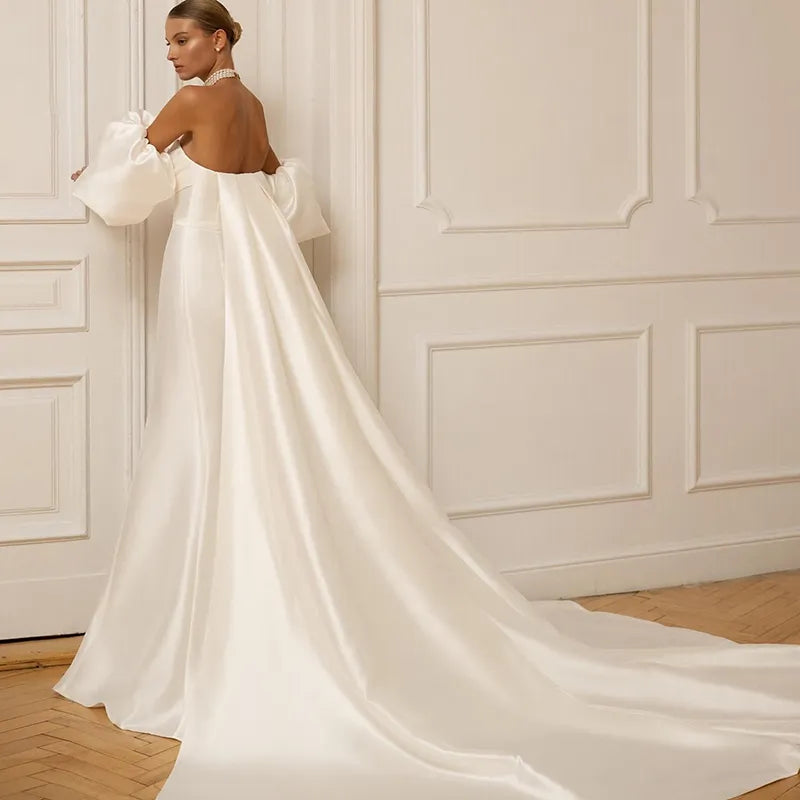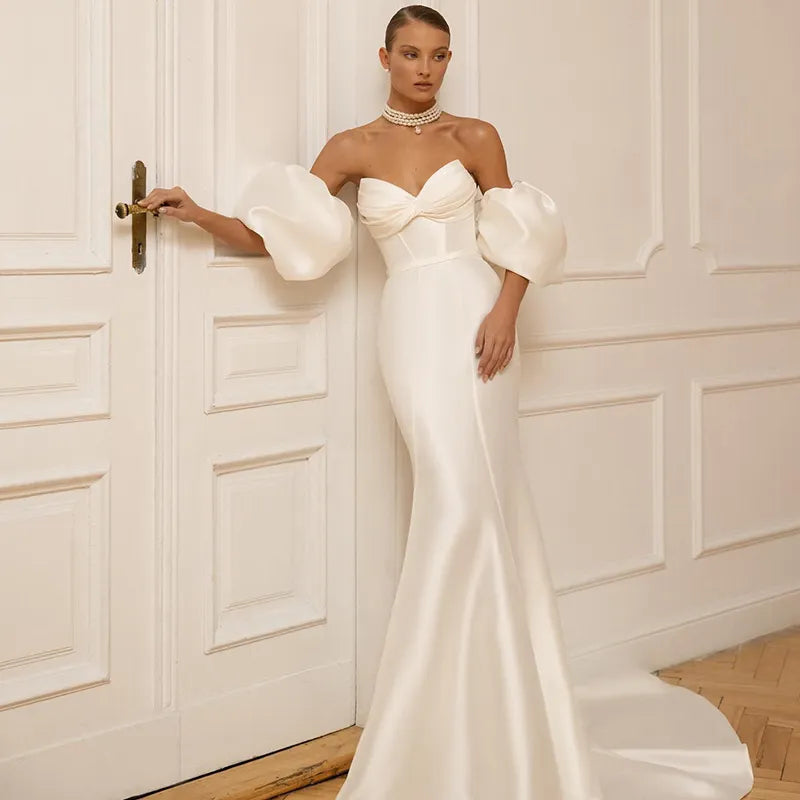 Runhufu Ivory Mermaid Wedding Dresses 2023 Sweetheart Satin Bridal Gowns Boho Beach Detachable Train Wedding Prom Gowns Custom Size
