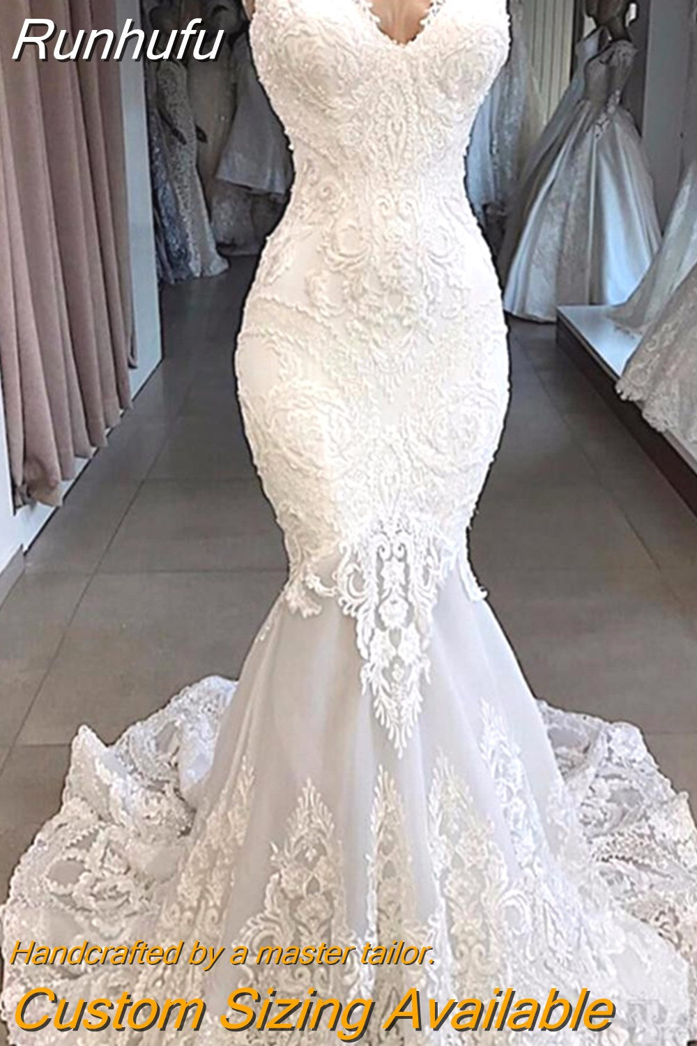 Runhufu NICEB Mermaid Wedding Dress Pearls Beaded Lace Bridal Gowns For Bride Brazil Appliques Vestido De Novia Custom Made
