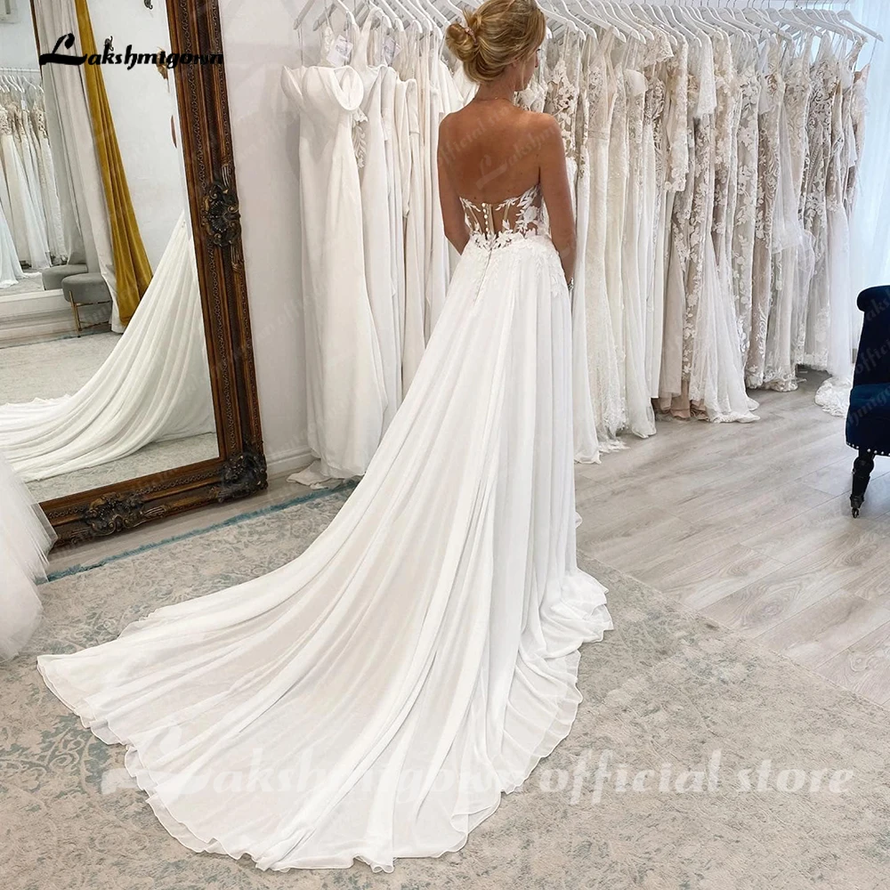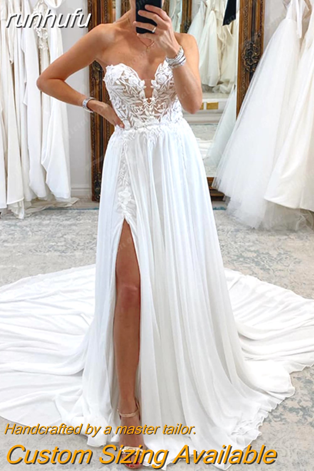 runhufu Lace Chiffon A Line Boho Wedding Dress Sweetheart Backless 2023 Appliques Sweep Bridal Gown abito da spos Sexy