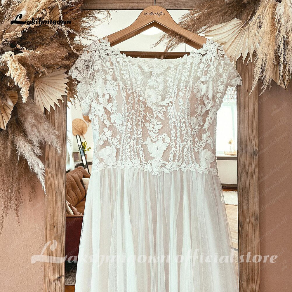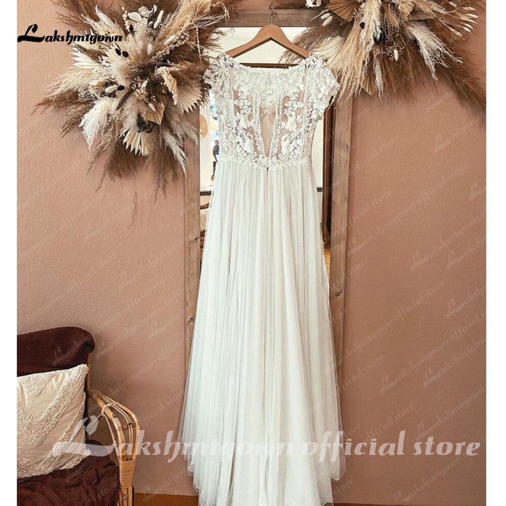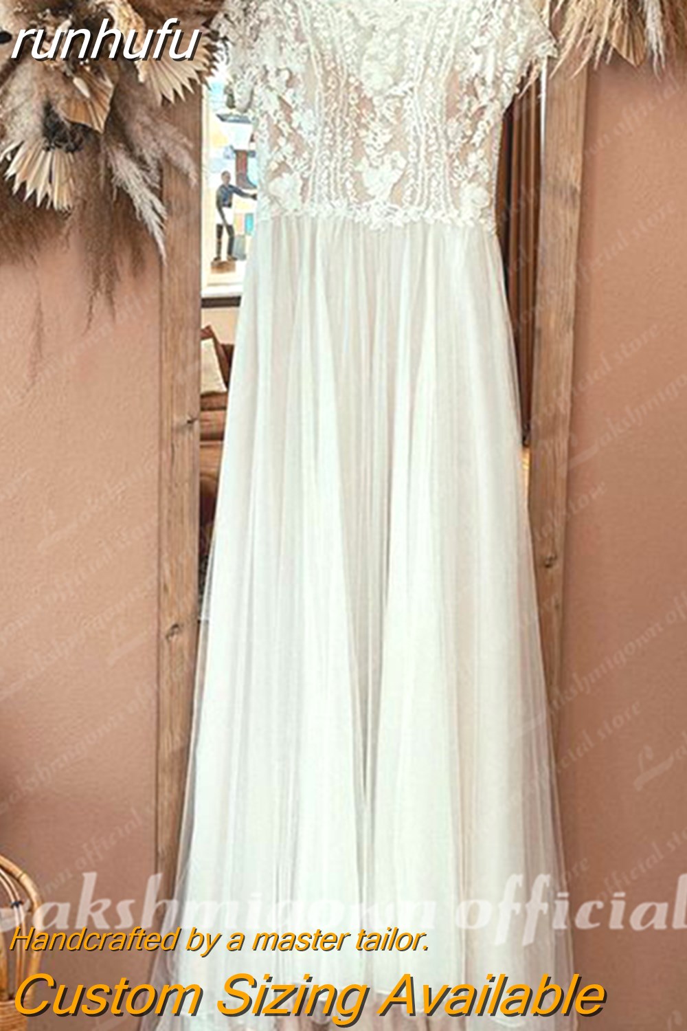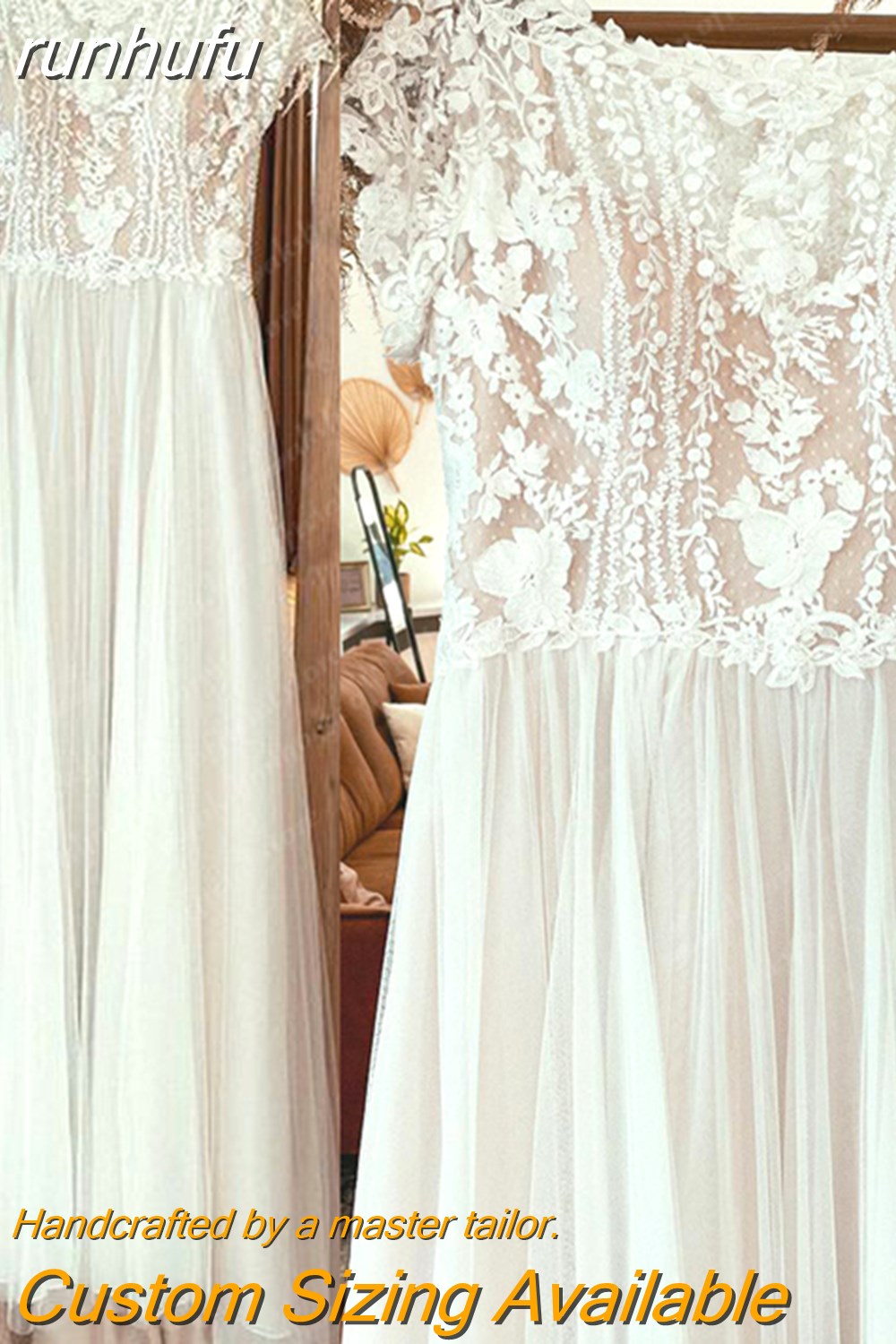runhufu Lace Floral A Line Beach Wedding Dress 2023 Cap Sleeve Robe Civil mariage Boho Bridal Gown Vestidos de Noiva