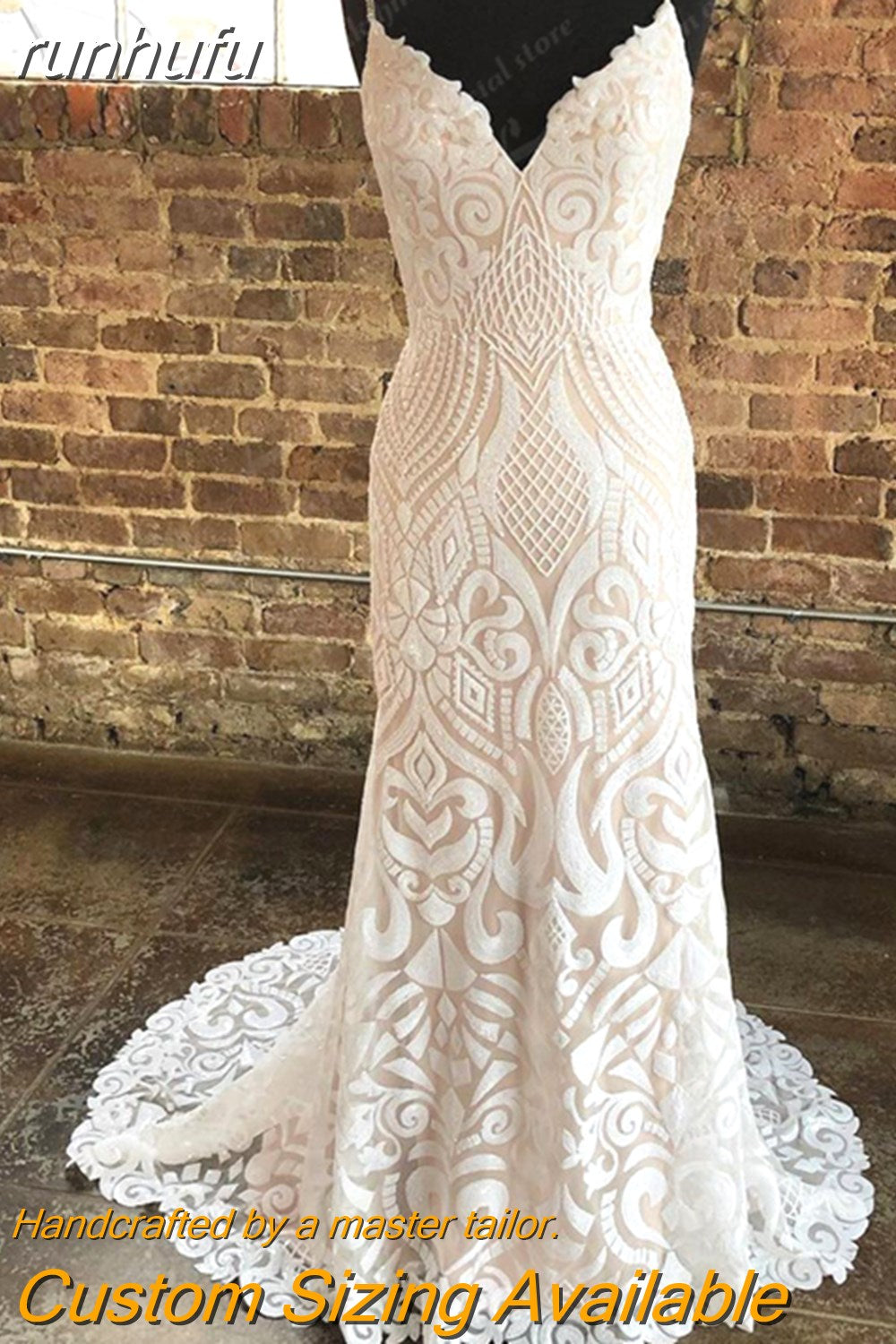 runhufu Lace Mermaid Wedding Dresses 2023 Sleeveless Spaghetti Straps Wedding Bridal Gowns Vestidos De Novia Custom Made