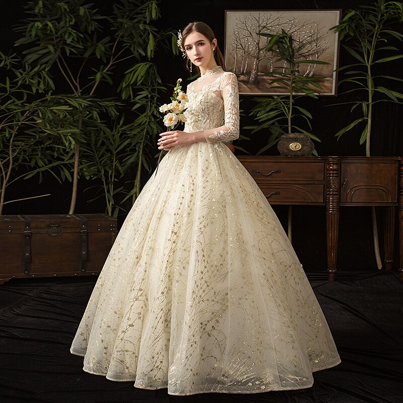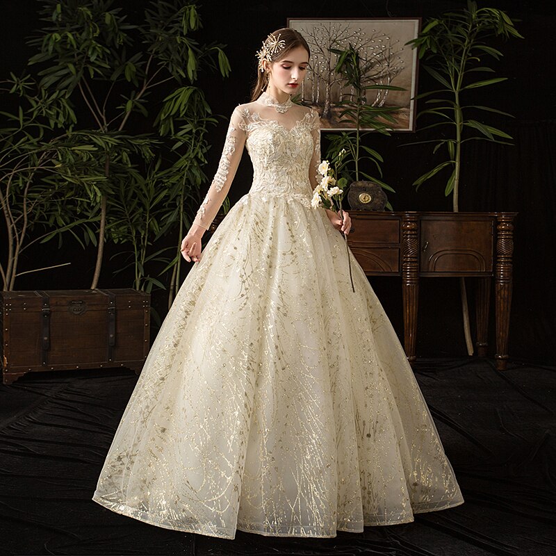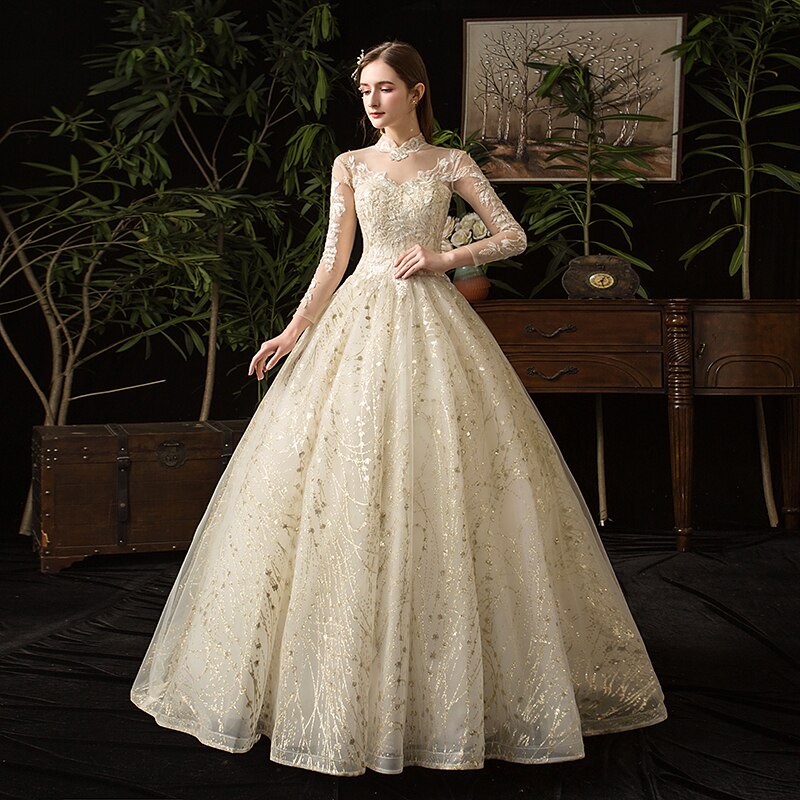runhufu Lace Muslim Wedding Dress 2023 New High Neck Full Sleeve Wedding Gown Vintage Bridal Gown Vestido De Noiva