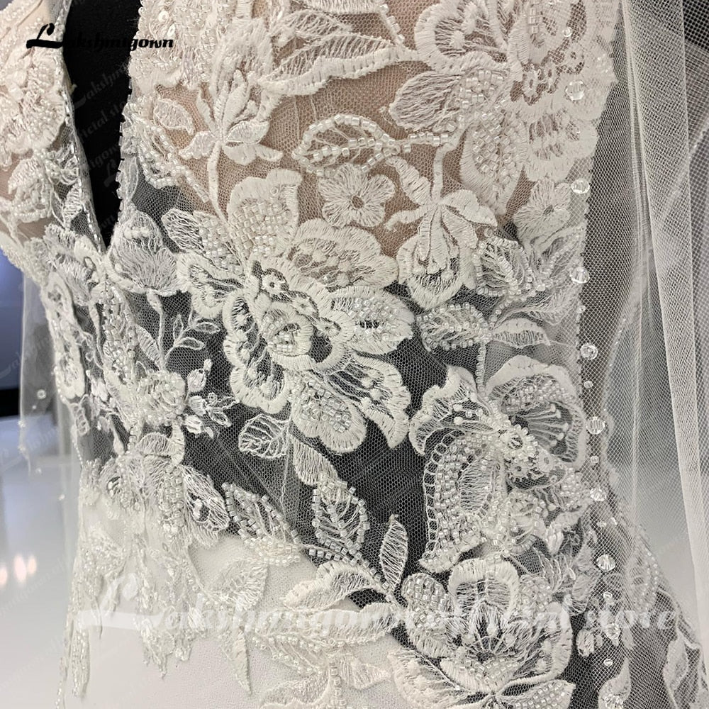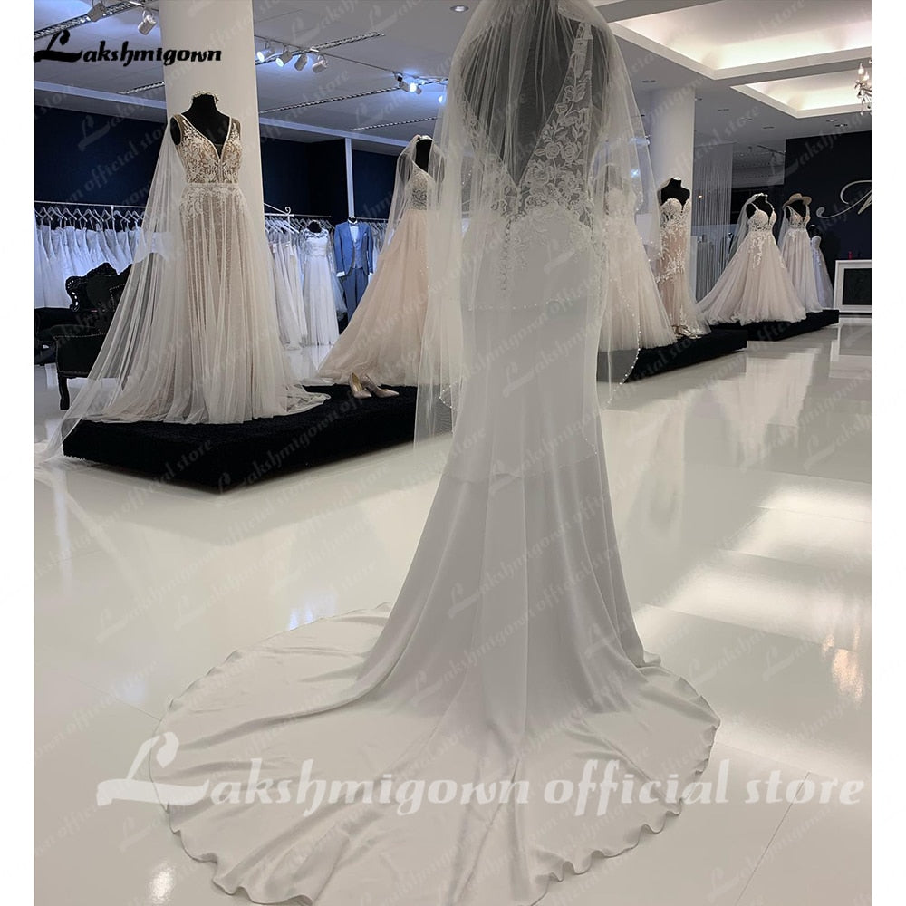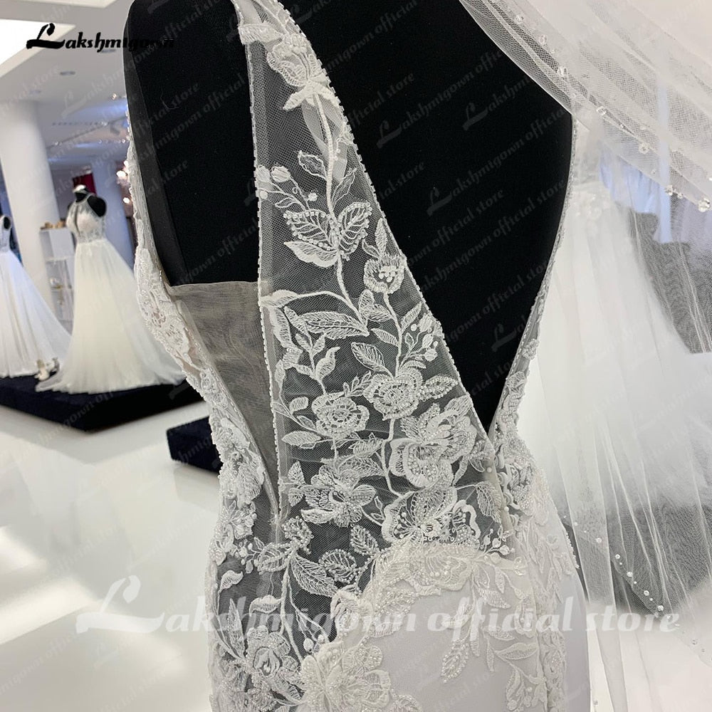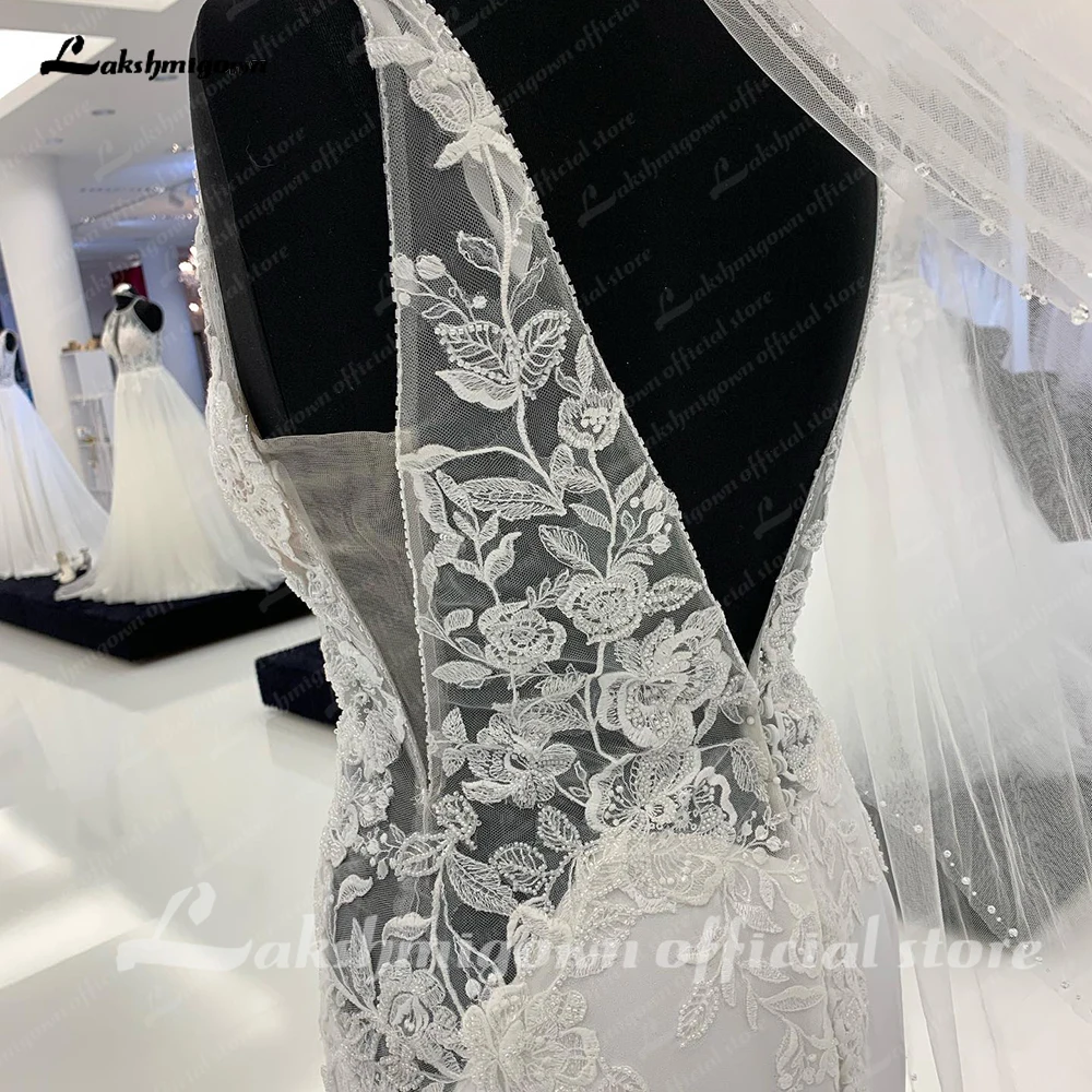 runhufu Lace Soft Satin Mermaid Wedding Dress Sexy Bridal Gowns Side Split Pluning V Neck 2023 Vestido De Noiva