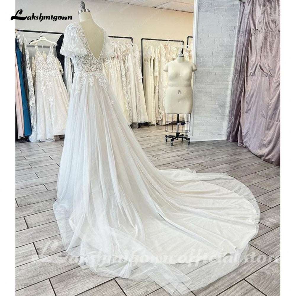 runhufu Lace V-Neck Boho Wedding Dress with Sleeves vestidos de fiesta A Line Tulle Beach Wedding Gowns 2023 Hochzeit
