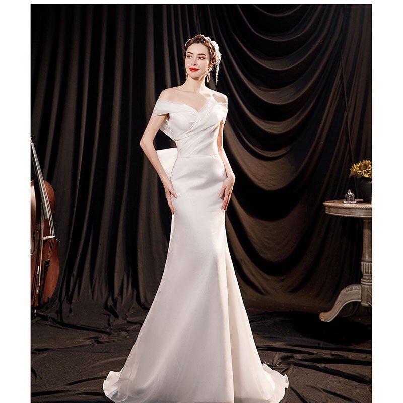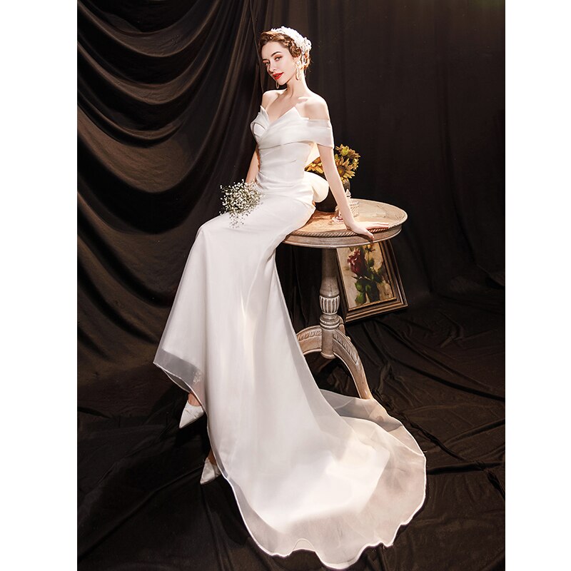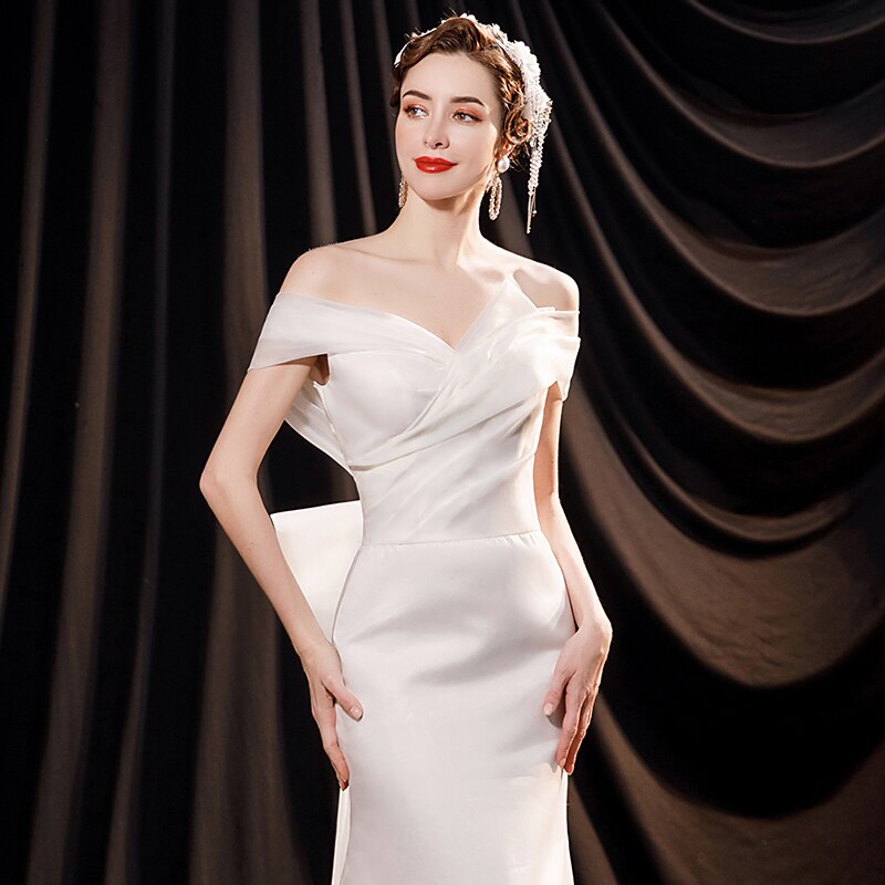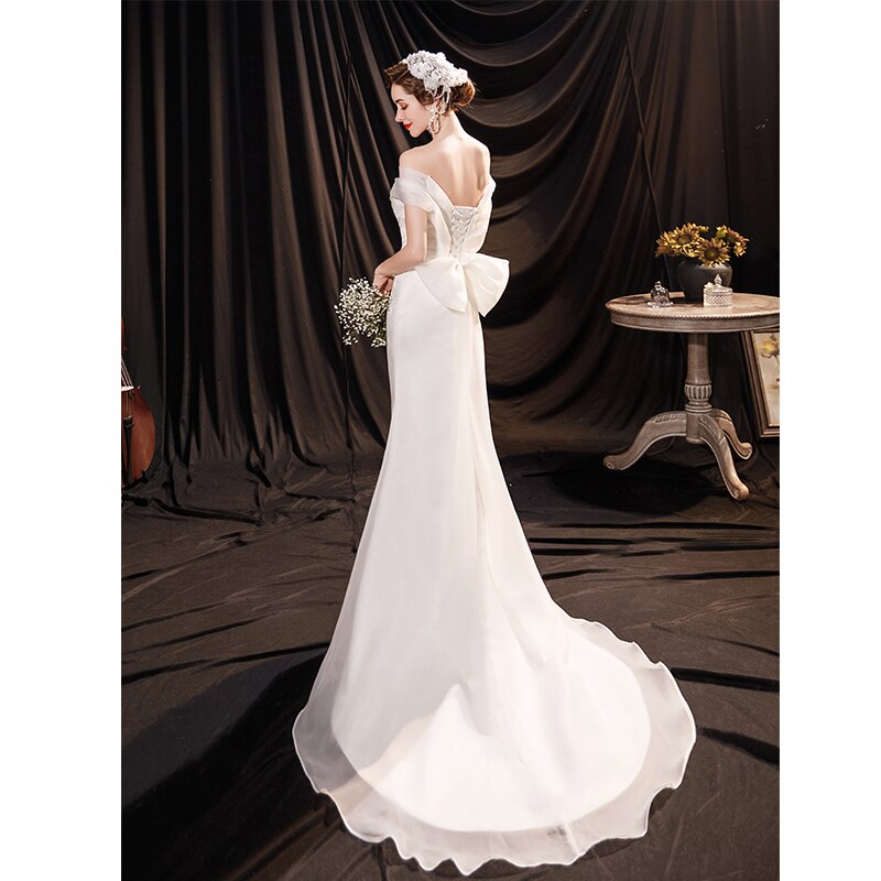 runhufu Light Wedding Dress Off The Shoulder Sexy Satin Memaid Wedding Dresses Big Butterfly Decoration Back Vestido De Noiva