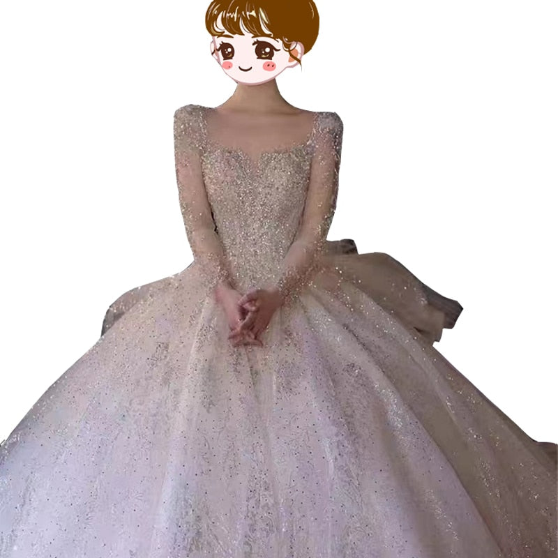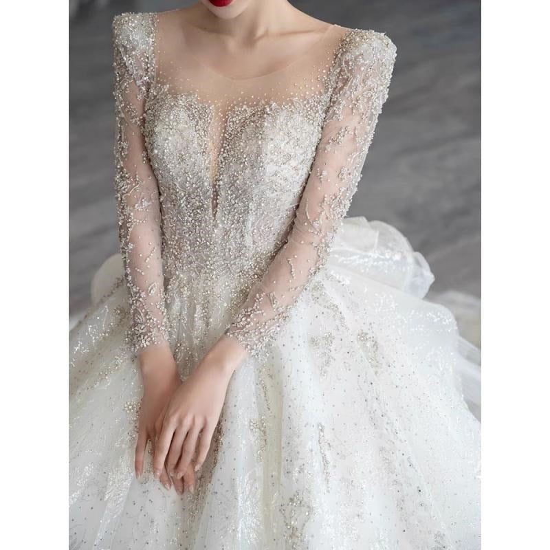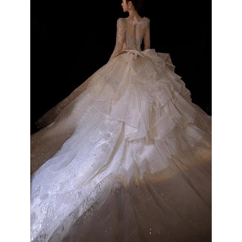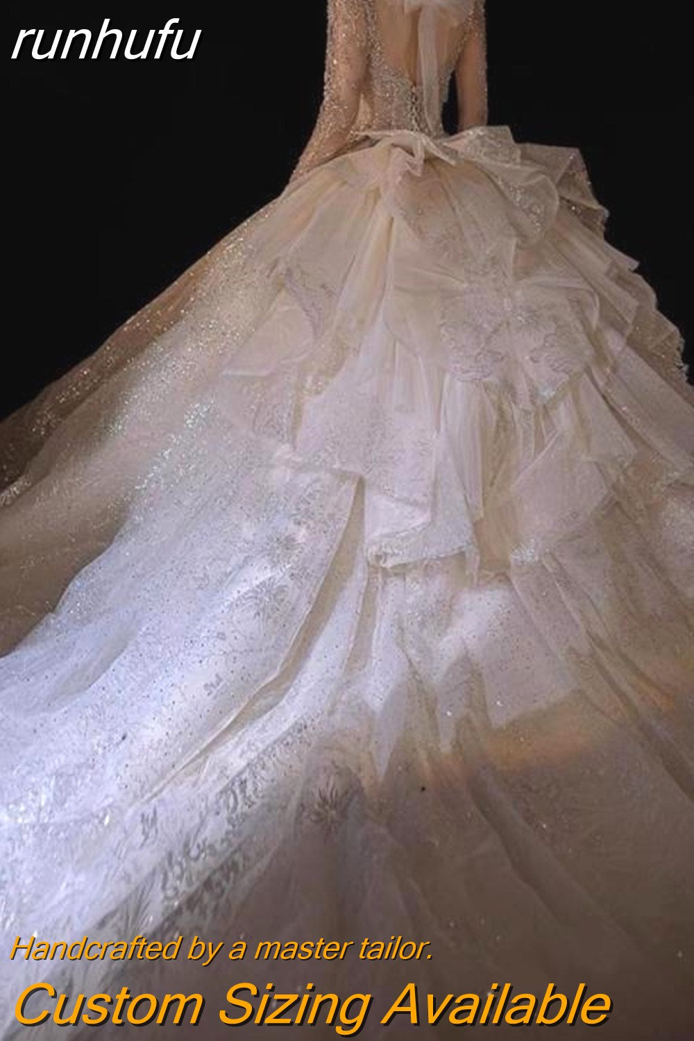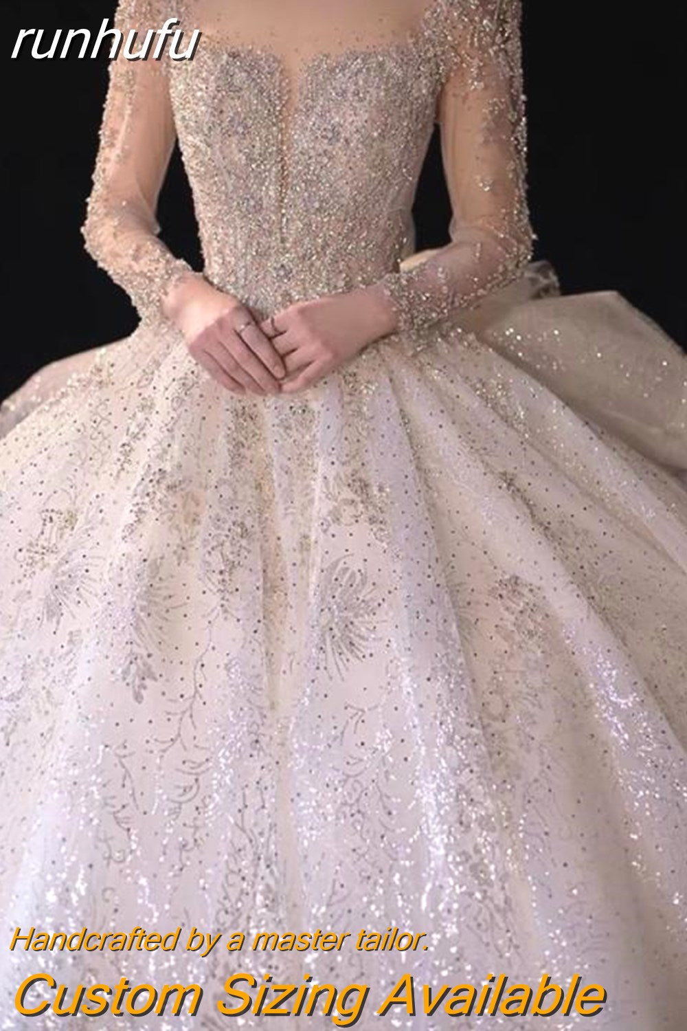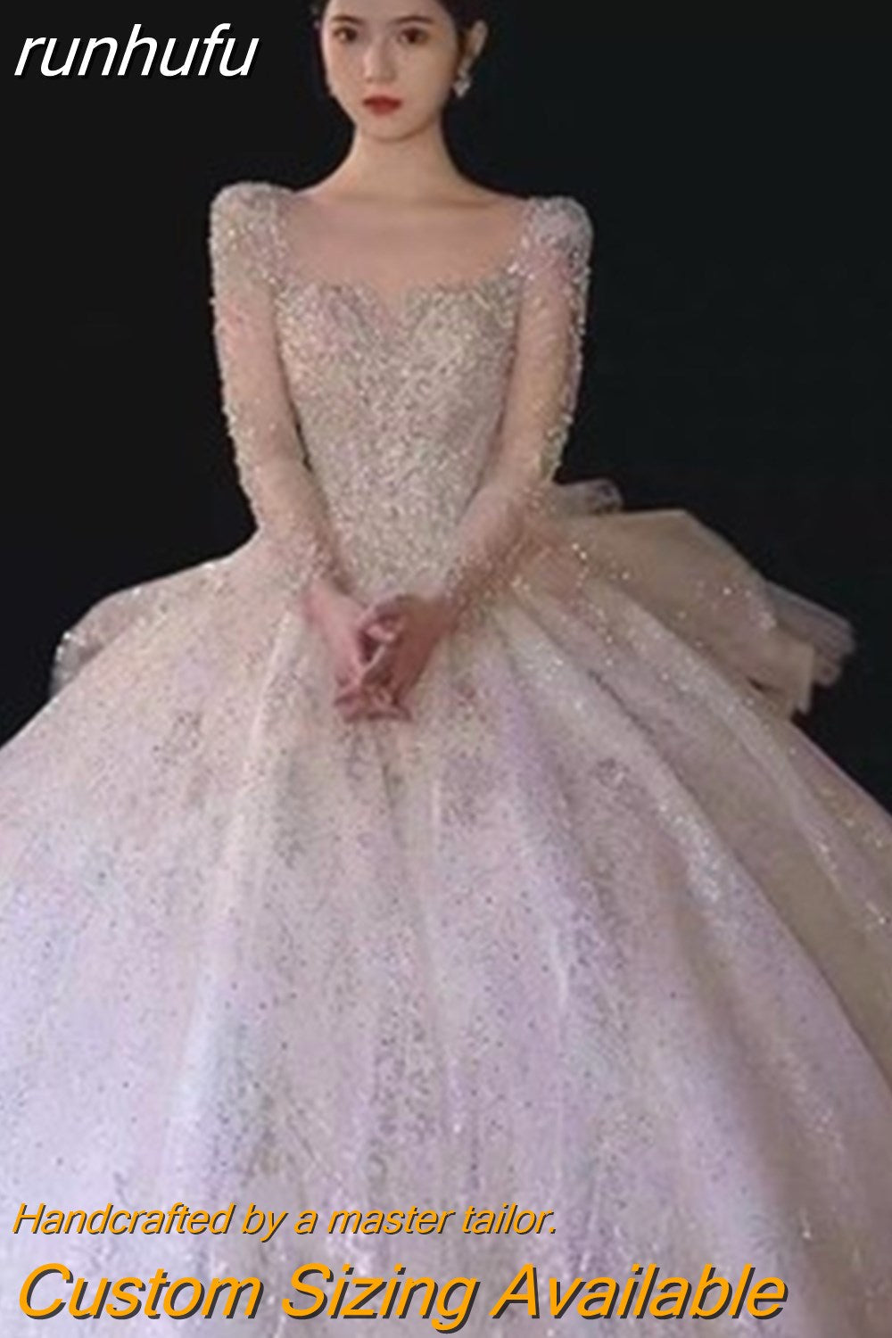 runhufu Long Sleeve Wedding Dress 2023 New Beading Shinning Wedding Gowns Sweep Train Sexy Back Vestido De Novia