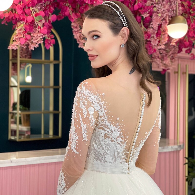 Runhufu NICEB 3/4 Lace Sleeves Wedding Dresses With Pocket Satin Sweep Train свадебное платье Bridal Ball Gowns Simple Customized