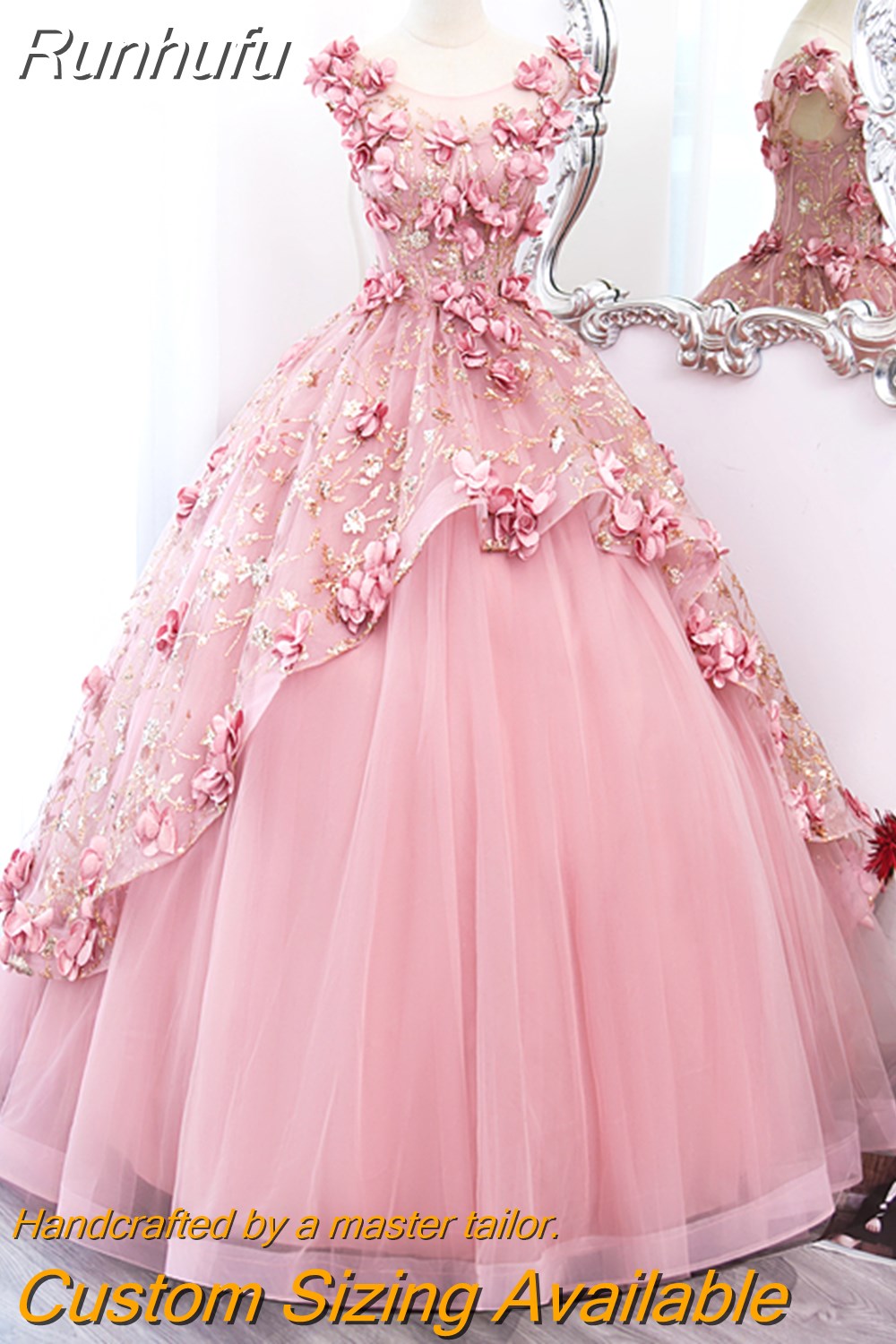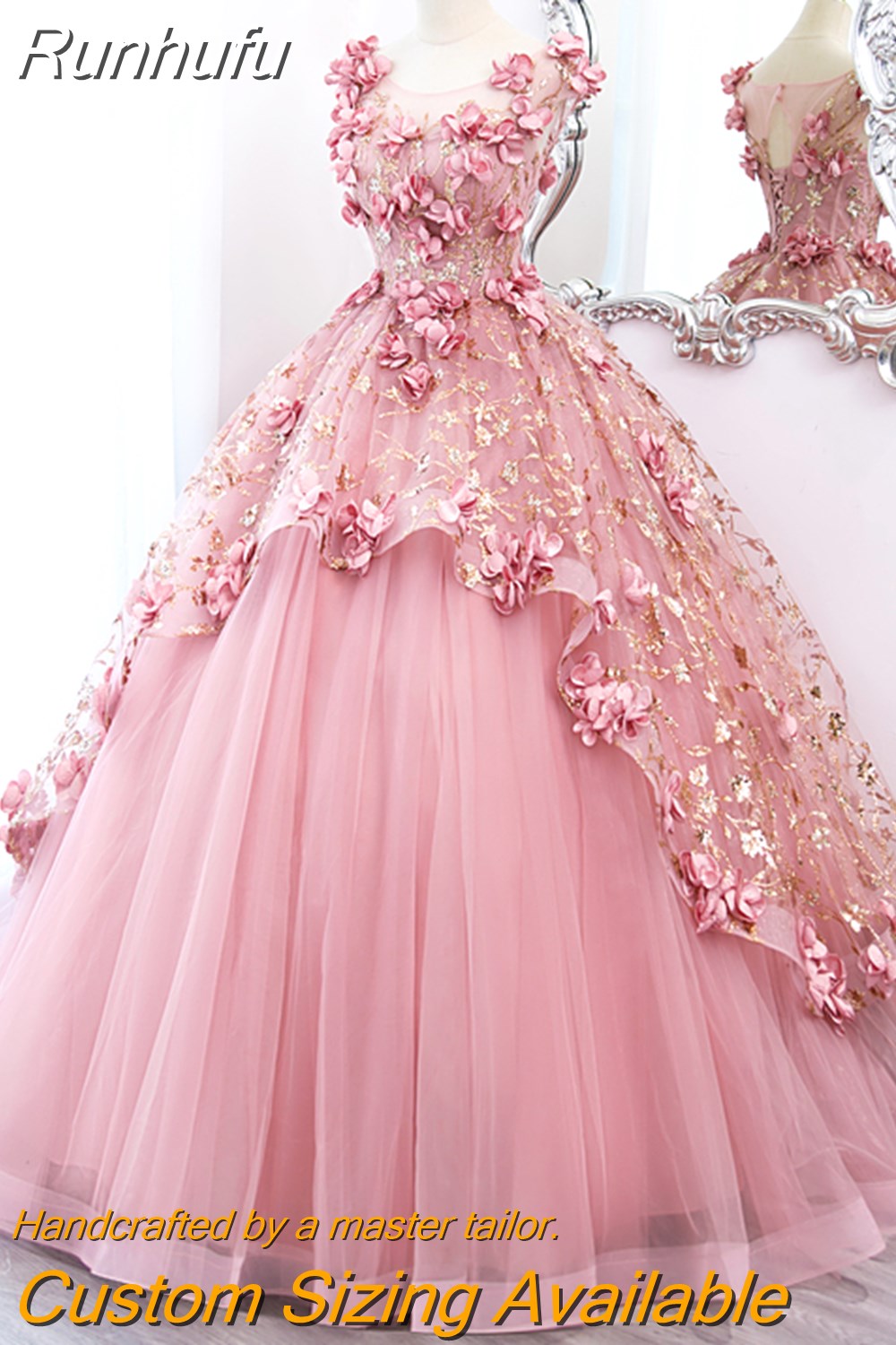 Runhufu Maria Novia Primrose Grass Dark Pink Quinceanera Dresses Flower Plus Size Ball Gown Prom Dress Vestidos Princesa 15 Anos