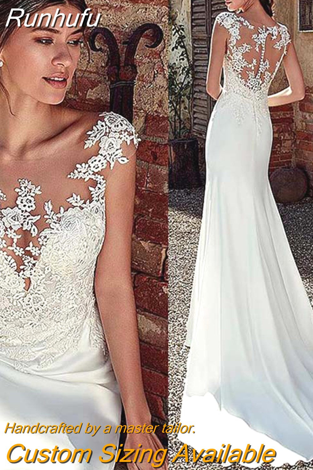 Runhufu Mermaid Applique Lace Wedding Dress Women 2023 New Appliquéd Illusion Boho Bridal Dress Vestido De Novia Customized Robe