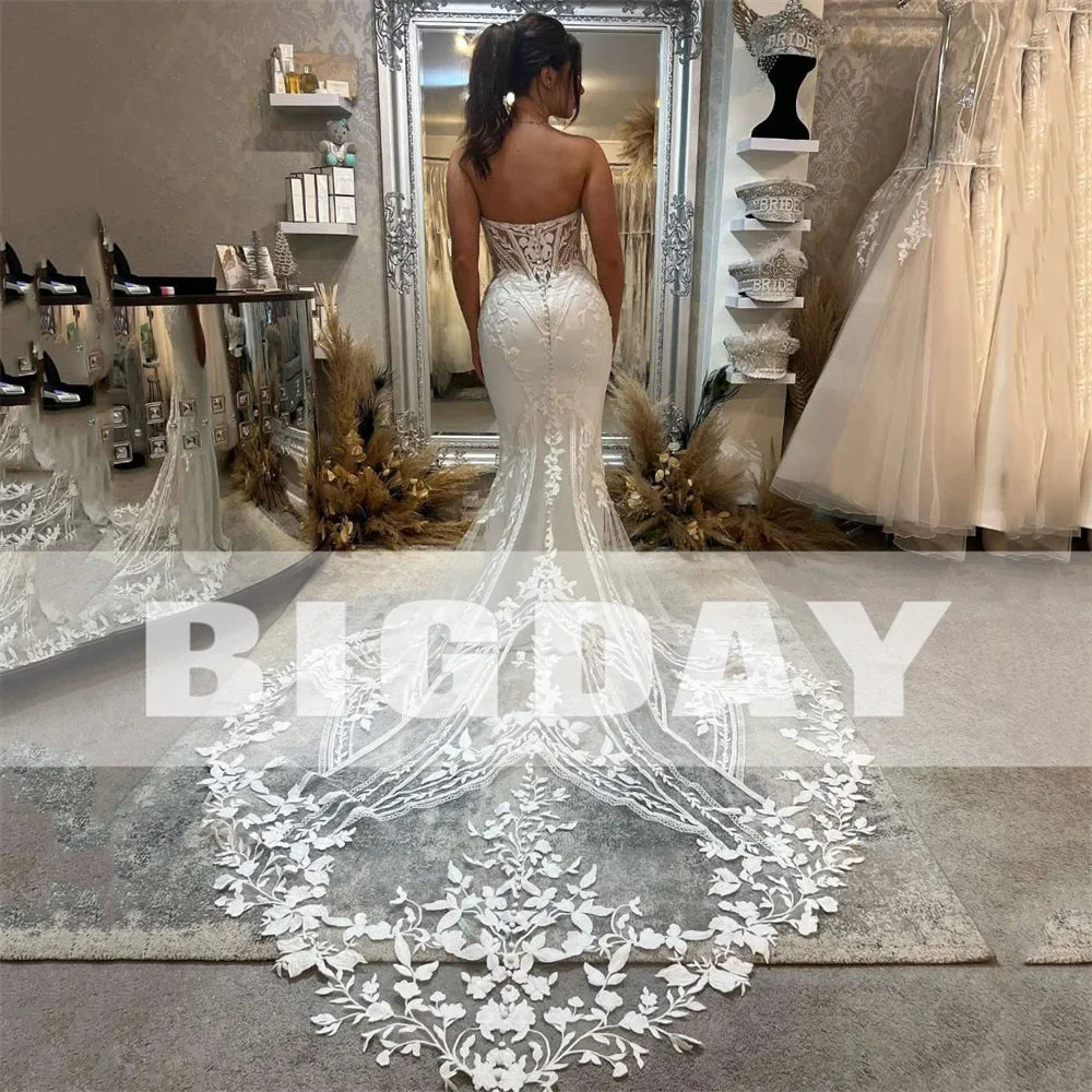 Runhufu Mermaid Wedding Dress Women 2024 Lace Open Back Sweetheart Strapless Applique Bridal Gown Sweep Train Vestidos De Noiva