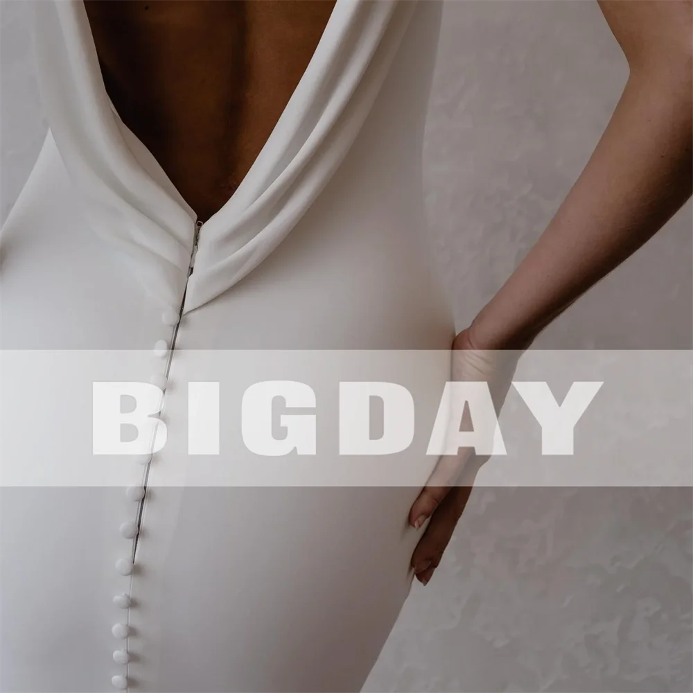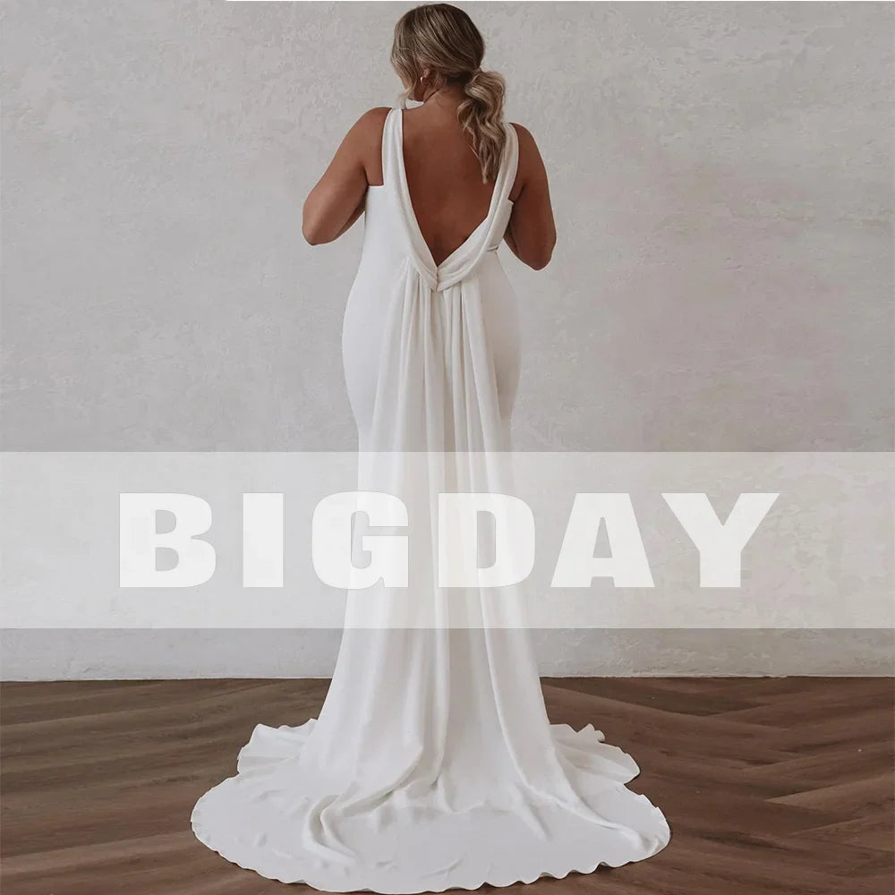 Runhufu Mermaid Wedding Dresses V-Neck Spaghetti Straps Satin Simple Bridal Gown Open Back Women Sweep Train Vestidos De Noiva