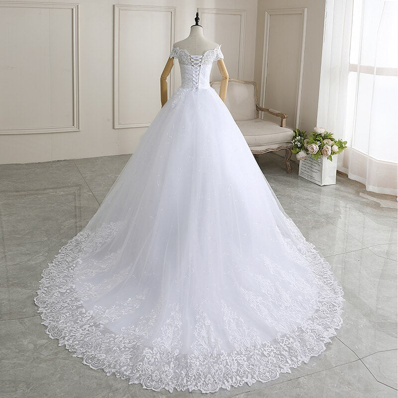 runhufu New Arrival Wedding Dress Sleeveless Organza Court Train Lace Up Ball Gown Off The Shoulder Princess Wedding Gown