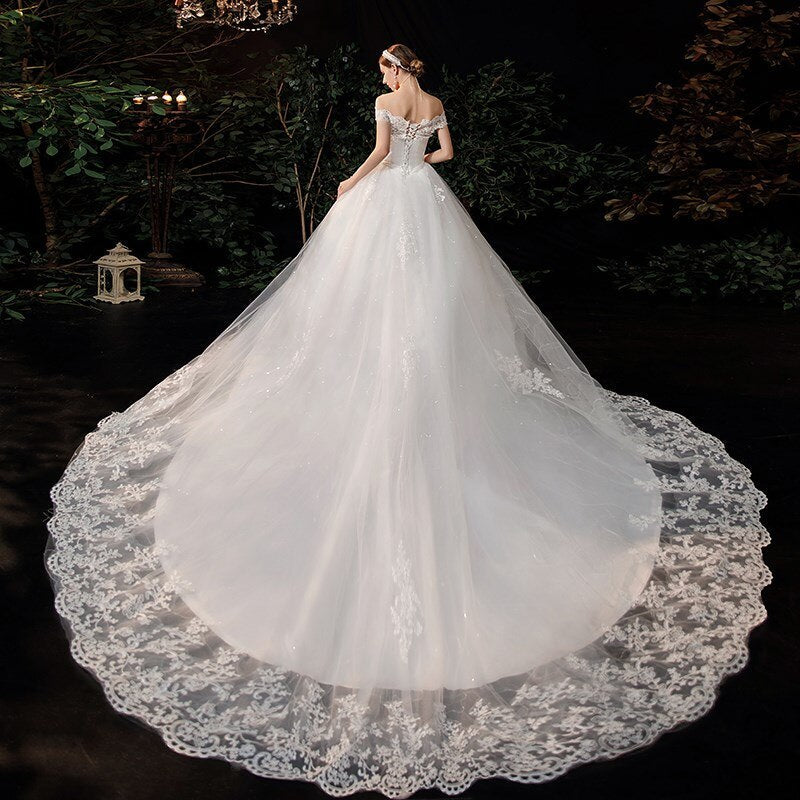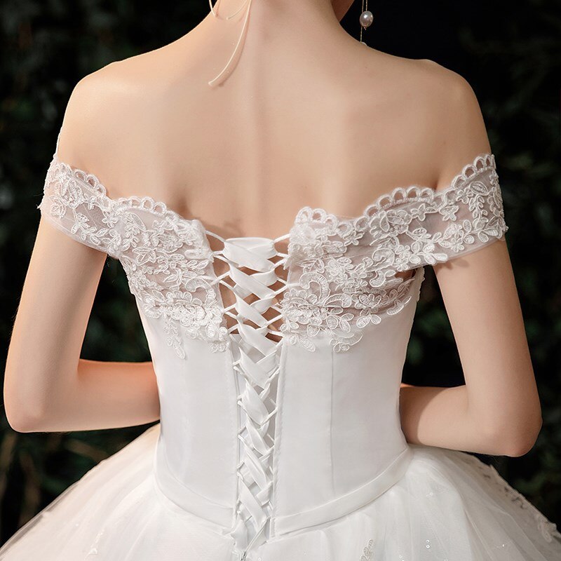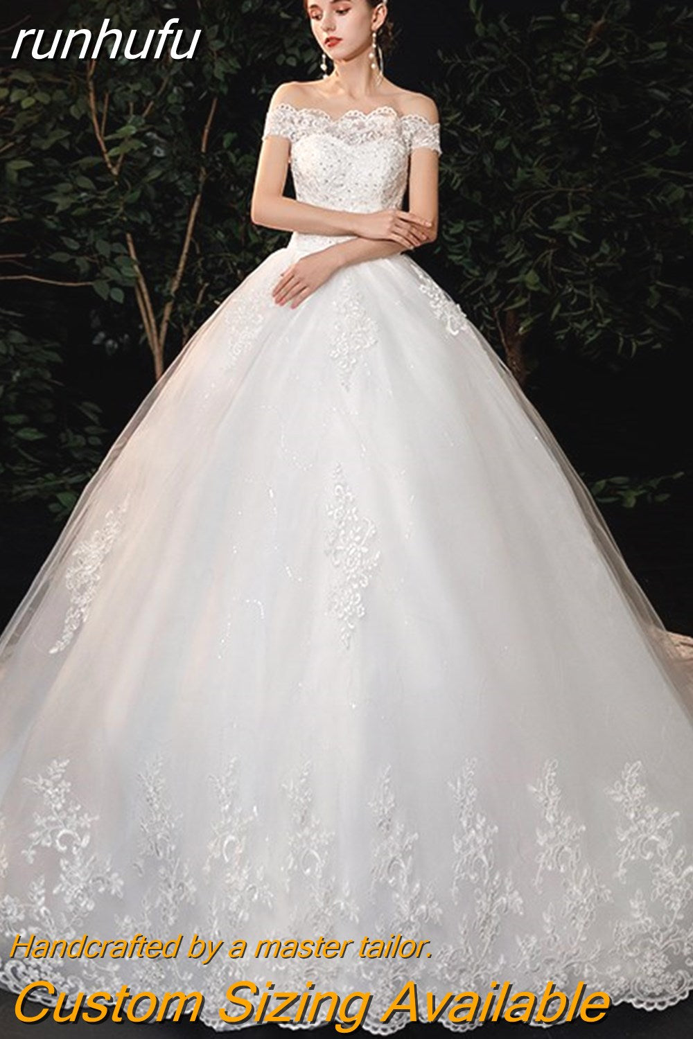 runhufu New Boat Neck Wedding Dress Sweep Brush Train Ball Gown Bridal Dress Lace Up Wedding Gowns Vestidos De Novia