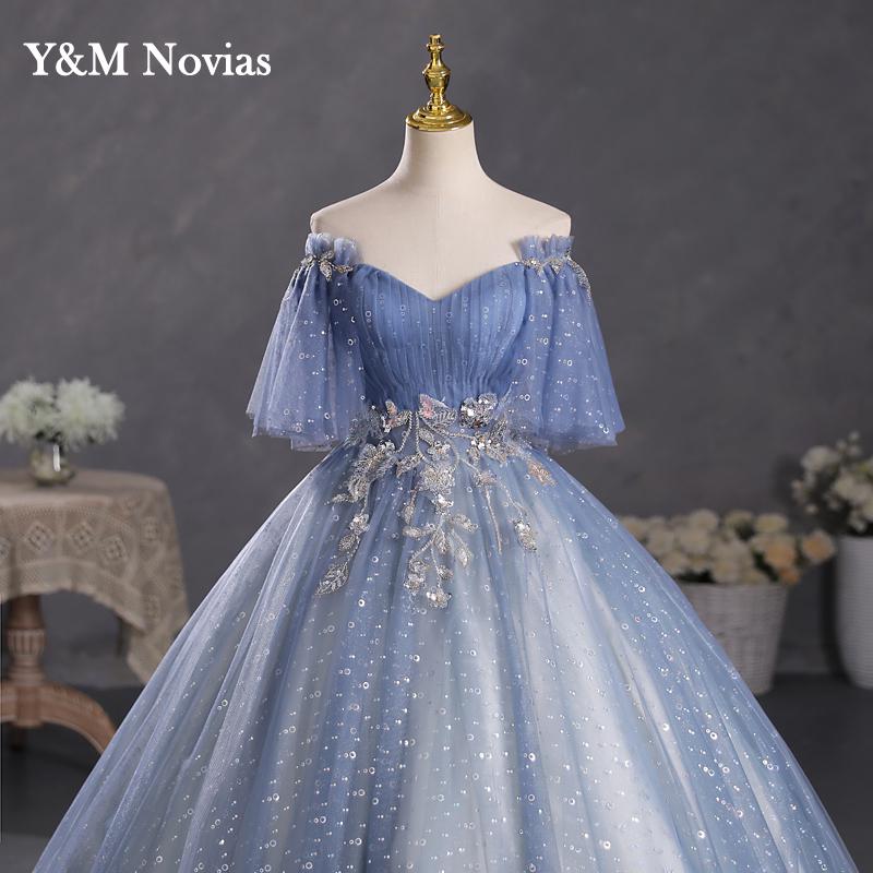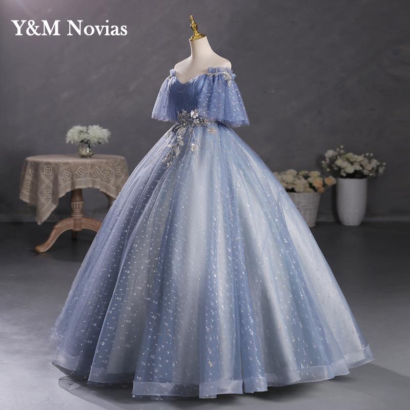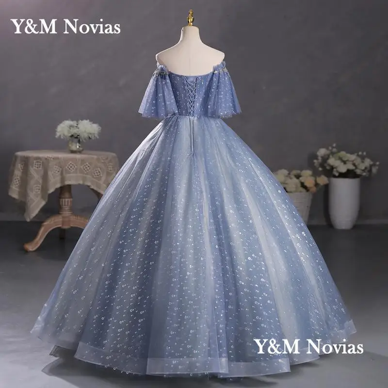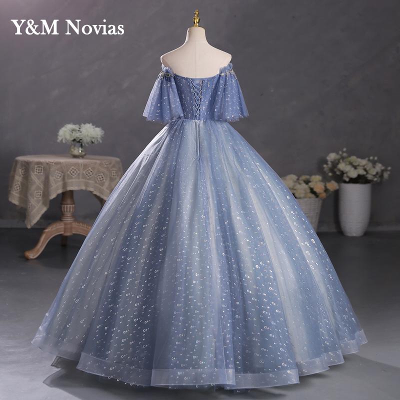 runhufu New Gray Blue Quinceanera Dresses Plus Size Ball Gowns With Sleeves Puffy Dresses For Prom Sweet 16 Dress Vestido De 15anos