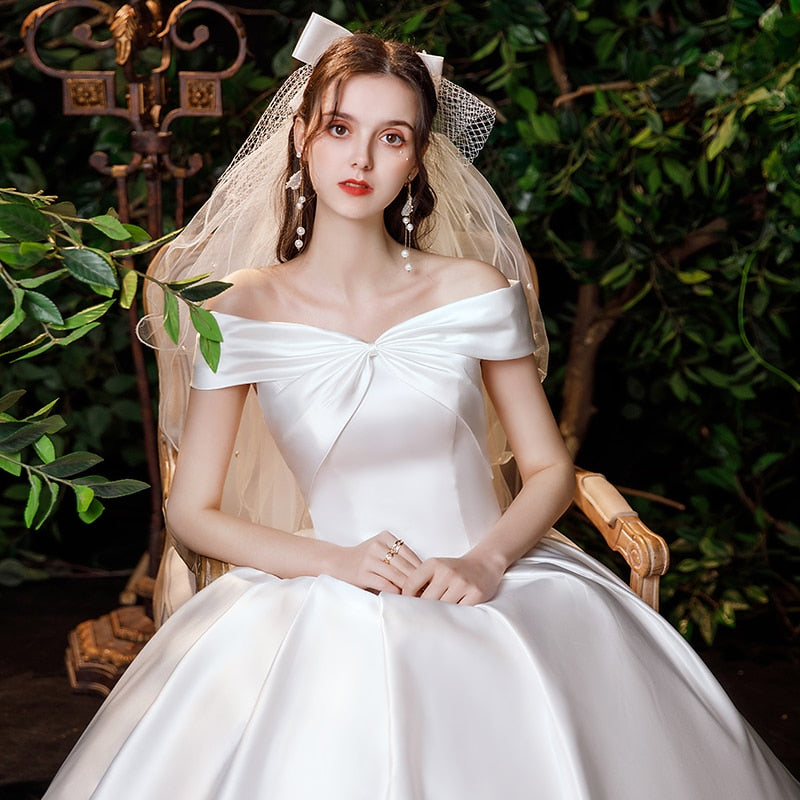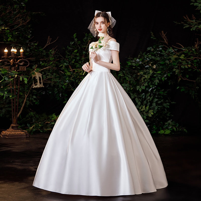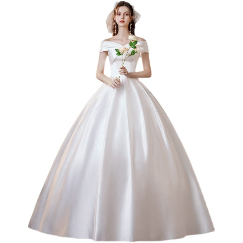 runhufu New Satin Wedding Dress Simple Boat Neck Short Sleeve Ball Gown Plus Size Custom Made Bridal Dress Vestido De Noiva