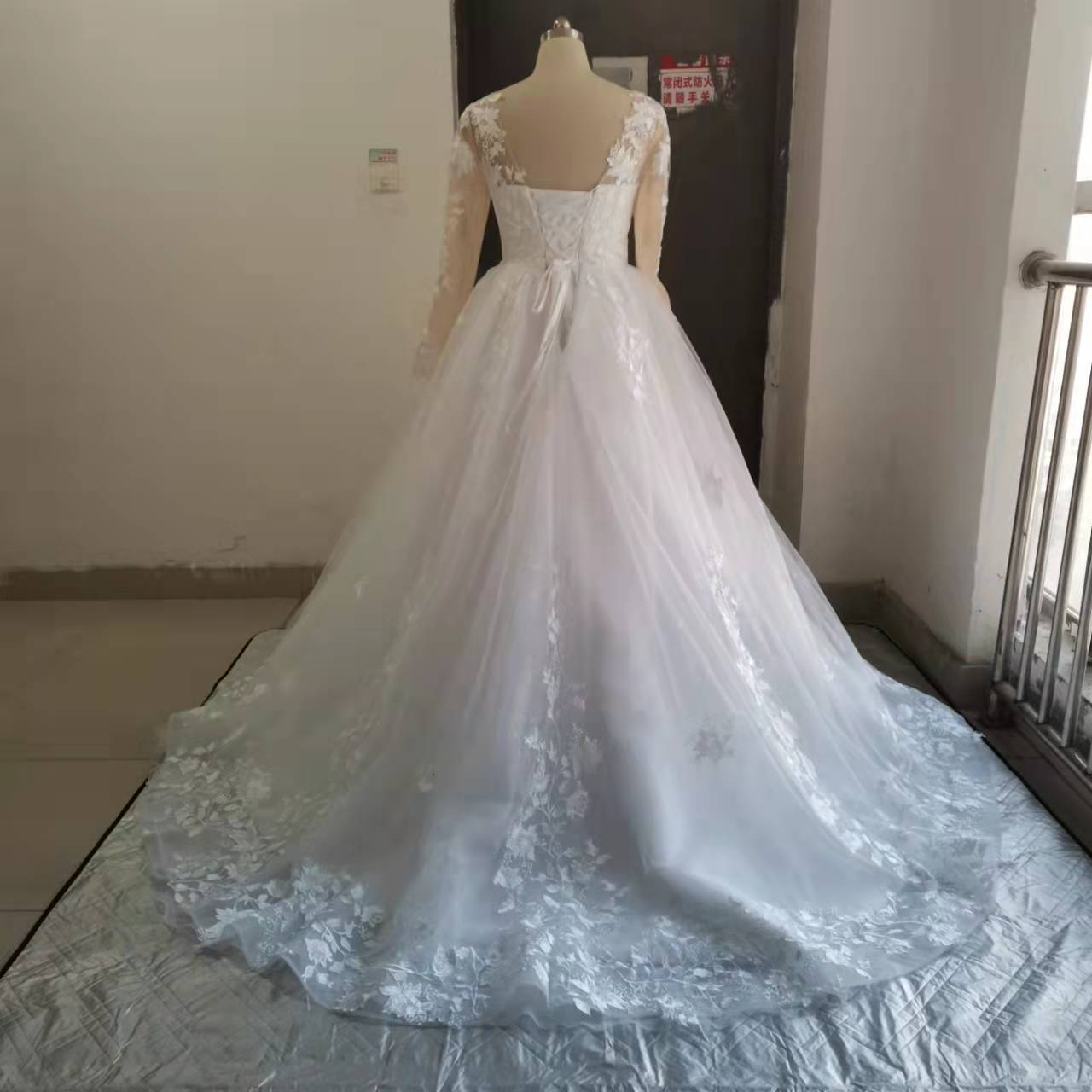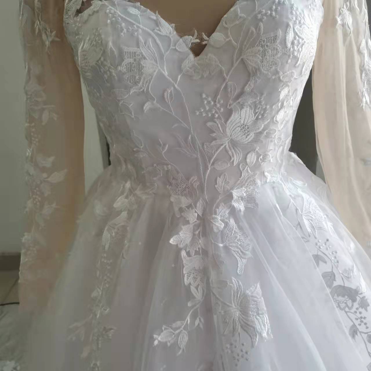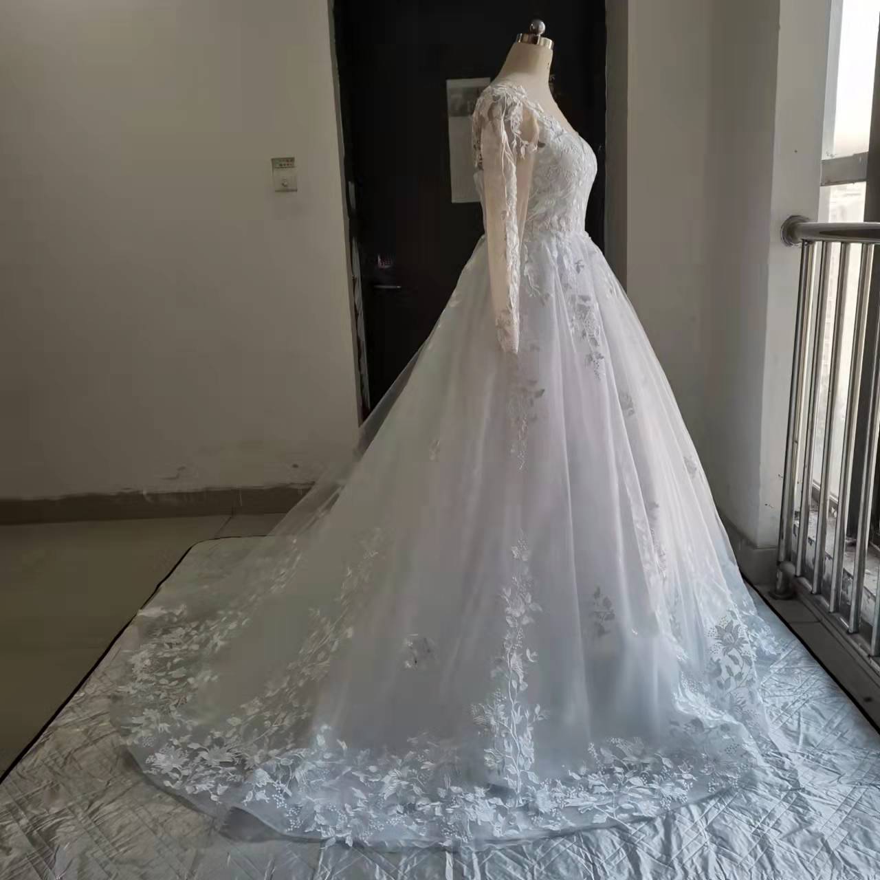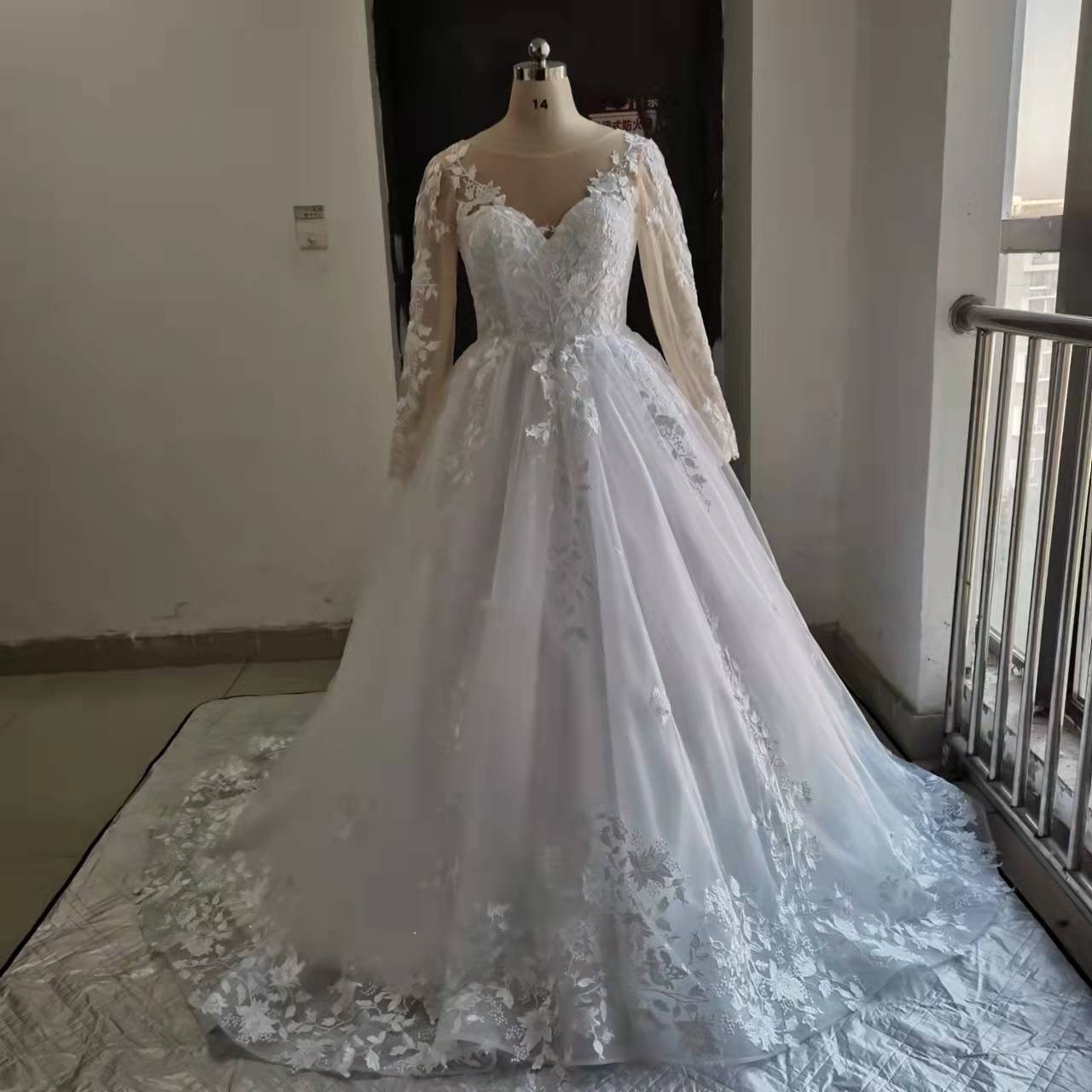 Runhufu New V Neck Long Sleeve Wedding Dresses Saudi Arabia Lace Bridal Gowns Court Train Elegant Lace Bridal Gown Vestido De Noiva