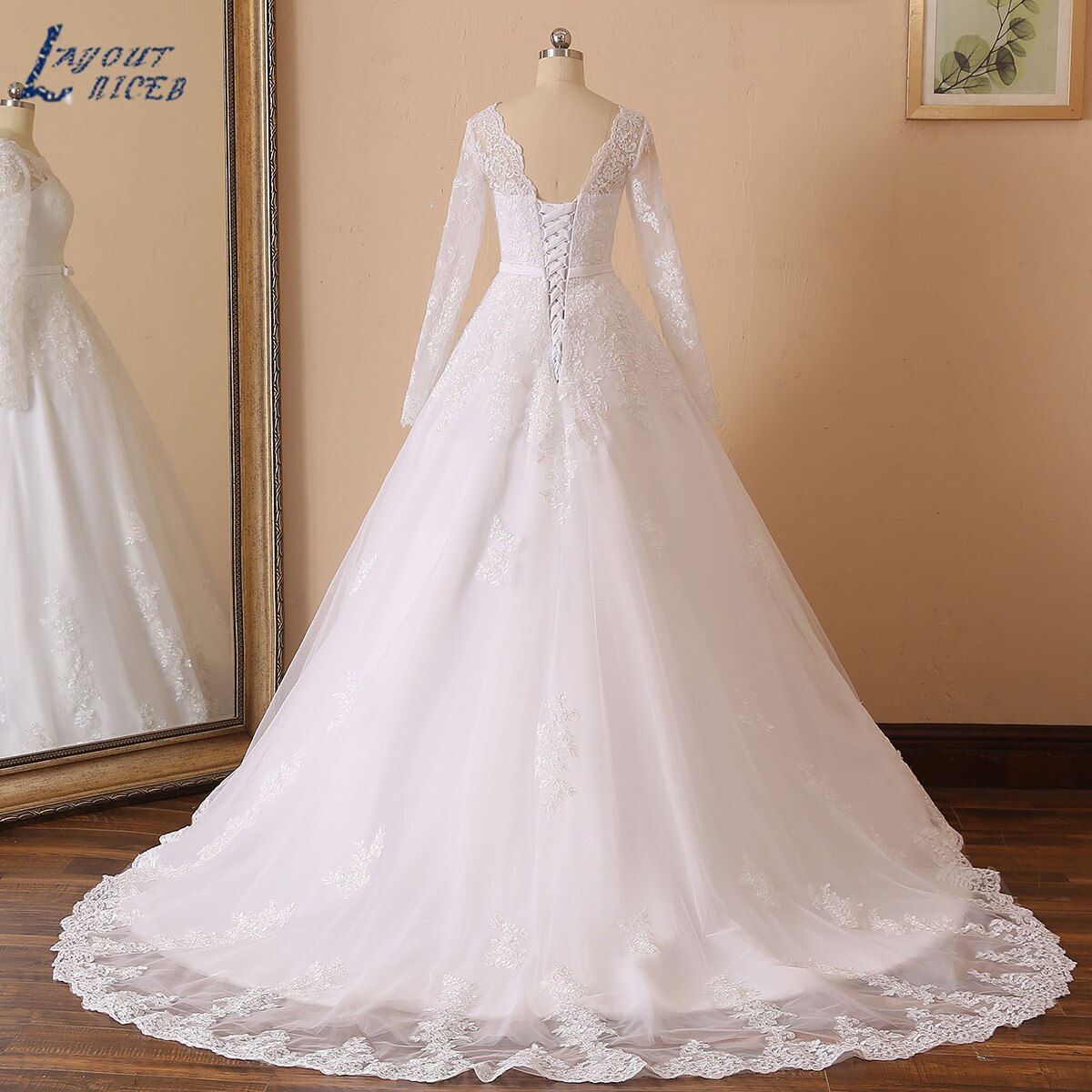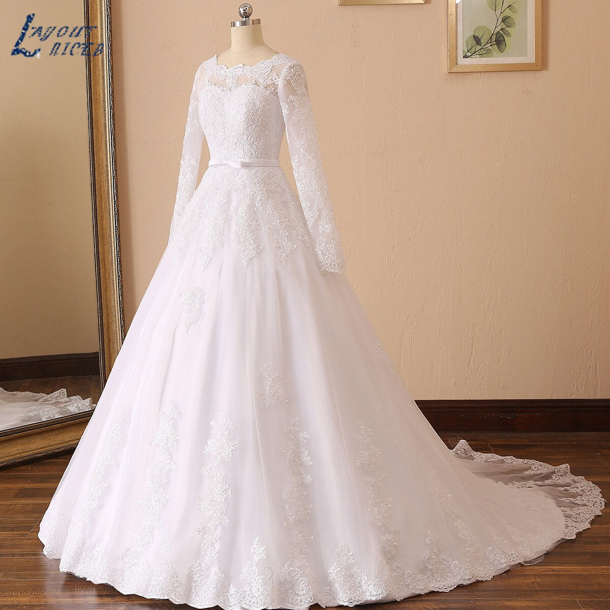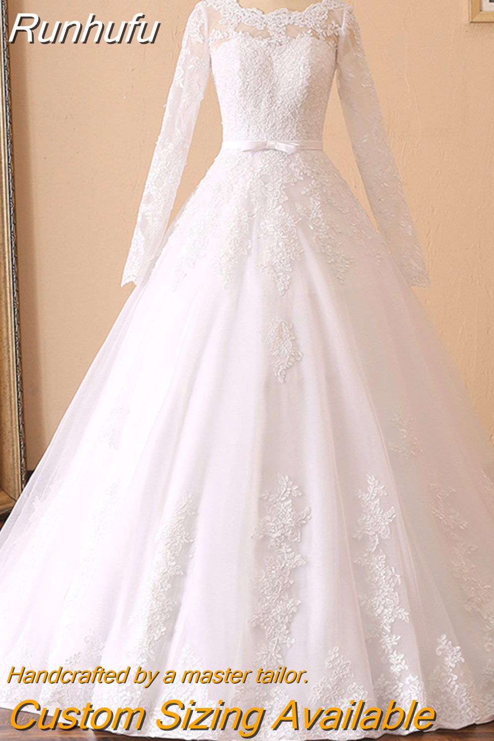 Runhufu NICEB Ball Gown Wedding Dress Long Sleeves Robe De Mariee Fashion Charming Lace Appliques Backless O Neck Women Custom