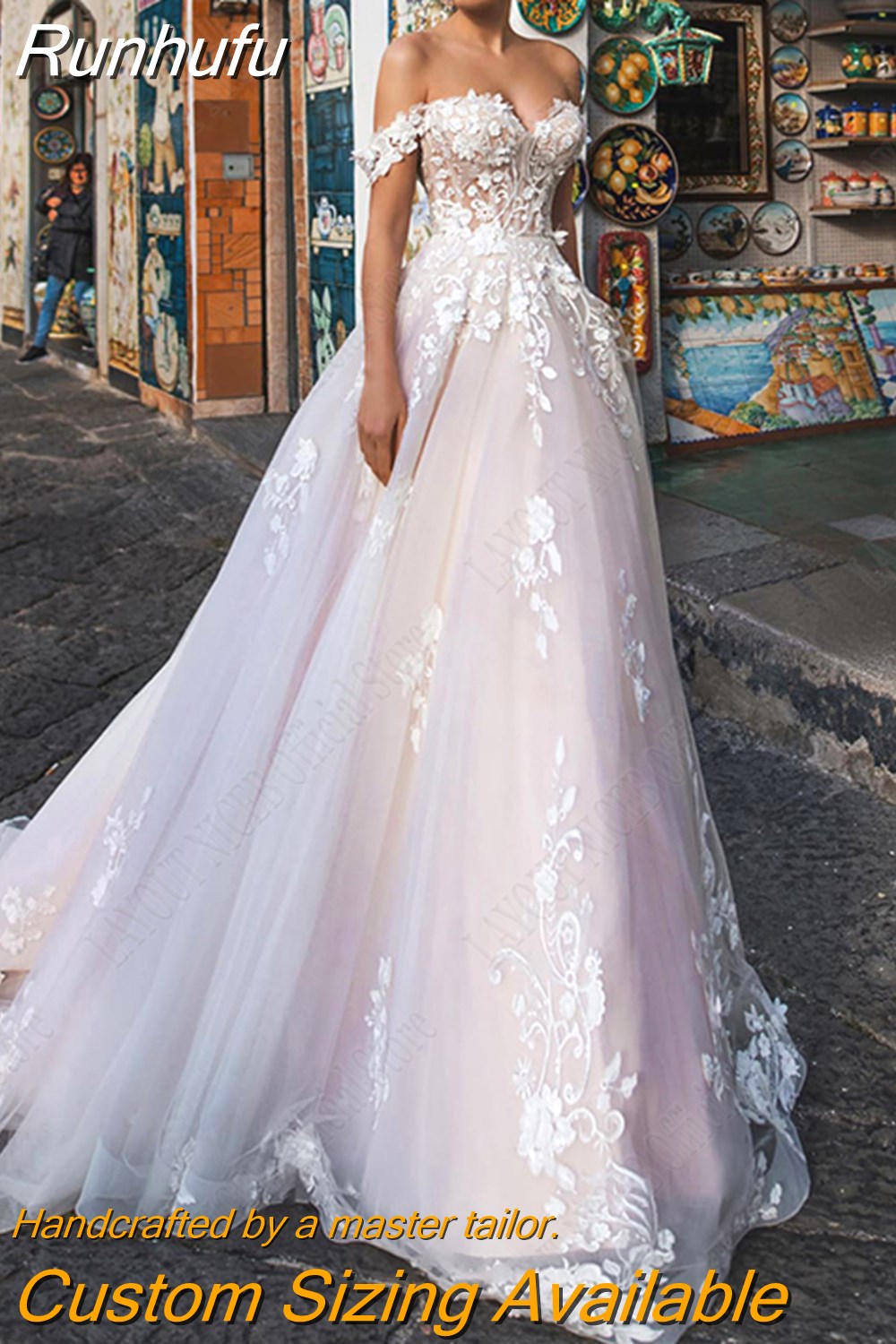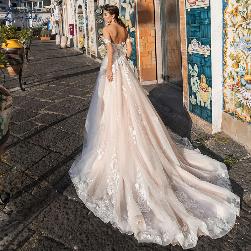 Runhufu NICEB Gorgeous Wedding Dresses Off Shoulder Lace Sweetheart Appliques Bride Gown Backless A-Line Tulle Vestidos De Novia