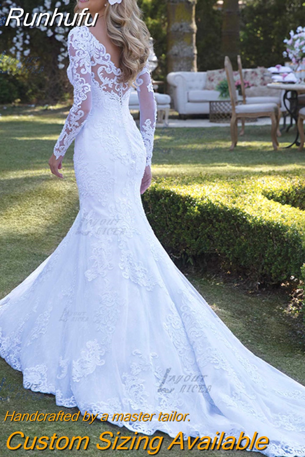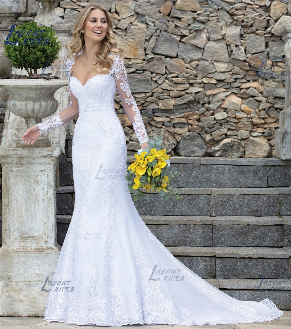 Runhufu NICEB Lace Mermaid Wedding Dress Long Sleeve Pearls Appliques Gorgesous New Design Bride Dress robe de mariage Vestido De