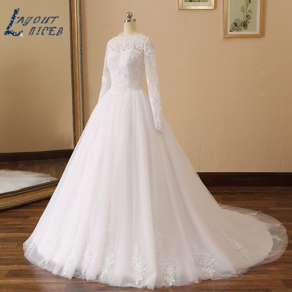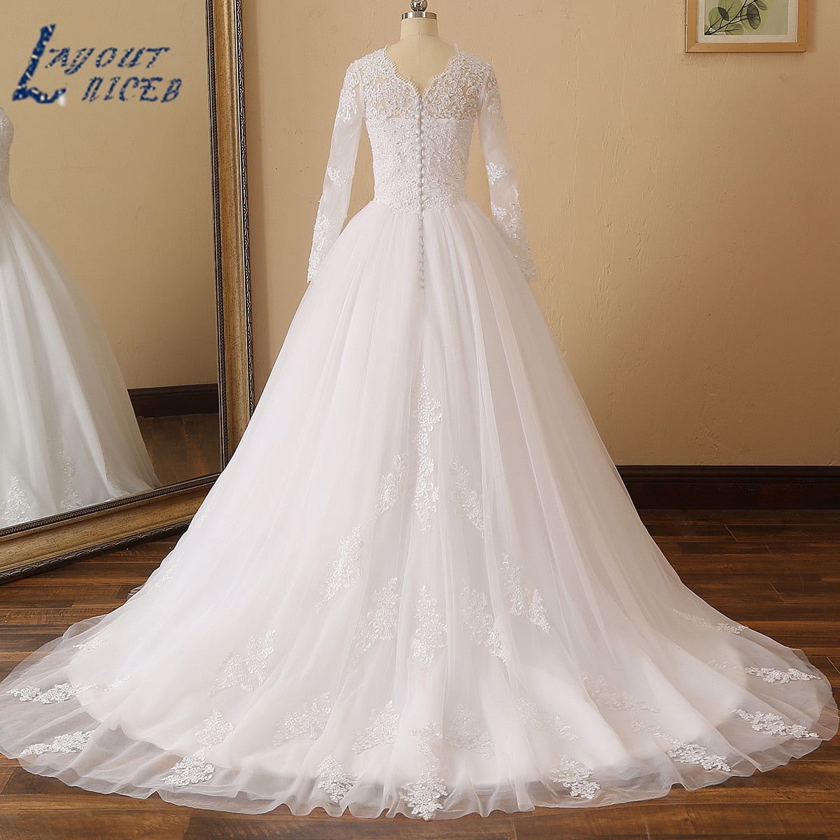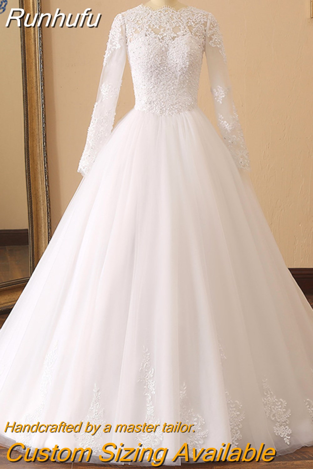 Runhufu NICEB Robe De Mariee Wedding Dress Lace Applique Luxury A Line Bling Beading Long Sleeves Bride Ball Gown Custom Princess