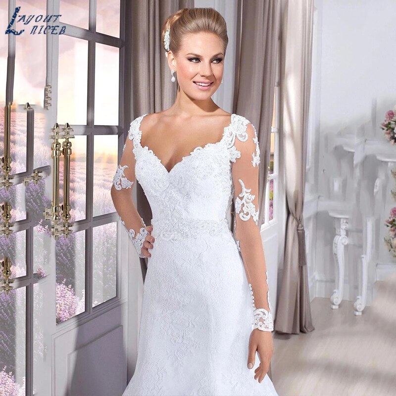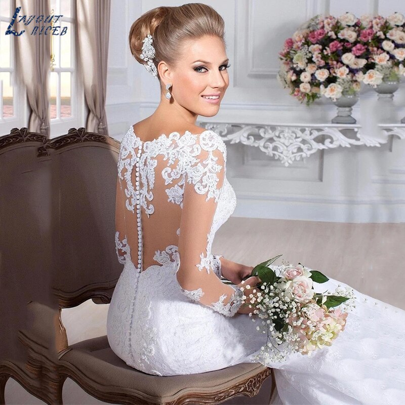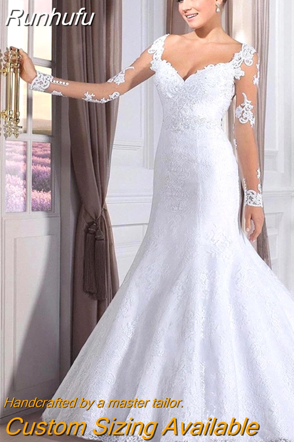 Runhufu NICEB Sweetheart Bride Wedding Dresses Mermaid Lace Long Sleeves Bridal Gowns Vestidos De Noiva Mariage Custom Made