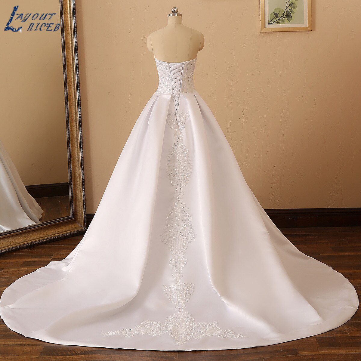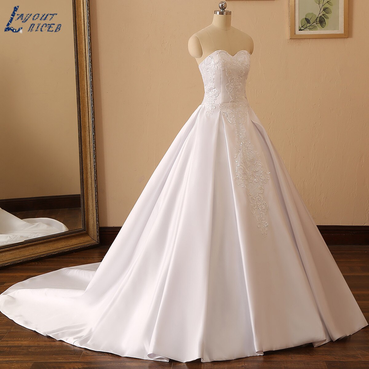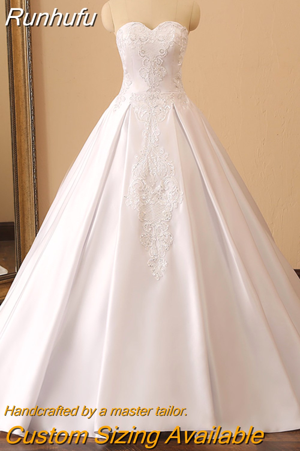 Runhufu NICEB Vestido De Noiva Wedding Dress Elegant Bling Sequin Lace Applique Satin Fashion Bridal Gown Strapless Sweetheart