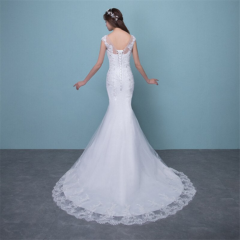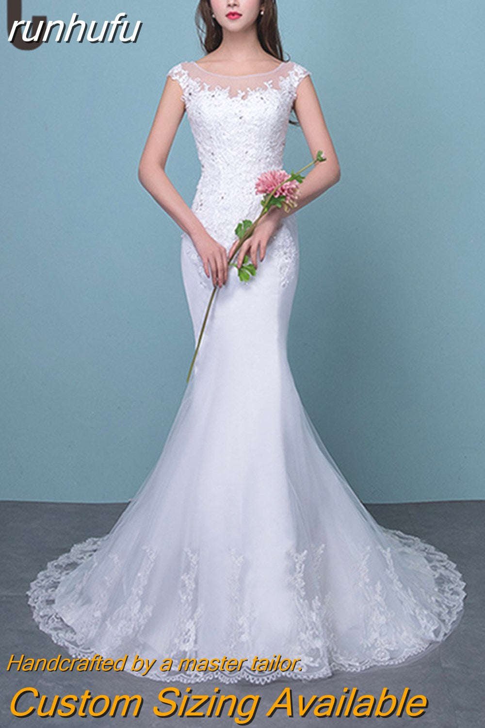 runhufu Novias Illusion Sexy Mermaid Wedding Dress New Style Korean Lace Appliques Sequined Fishtail Bride Princess estidos de noiva