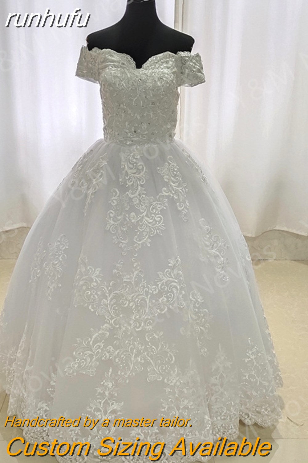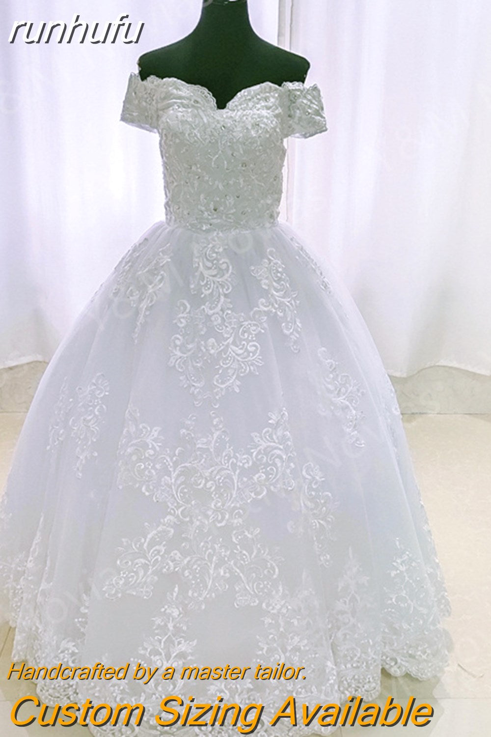 runhufu Novias New Off the Shoulder Vestido De Noiva White Ivory Plus Size Wedding Dresses Luxury Lace CRYSTAL Edge For Brides Gowns