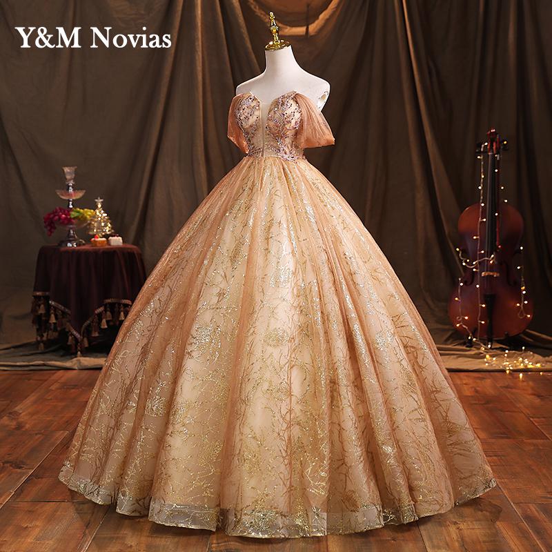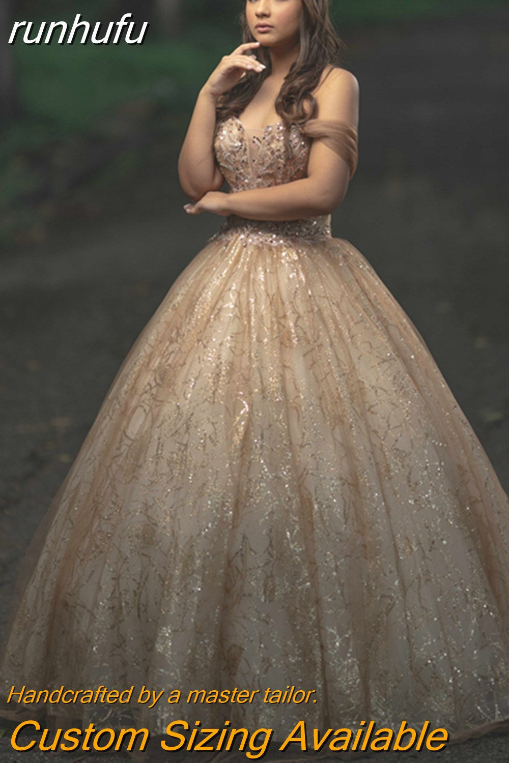 runhufu Novias Off Shoulder Giltter Quinceanera Dresses Ball Gown Tulle Flowers Formal Party Sweet 18 Vestidos Elegant Prom Dress