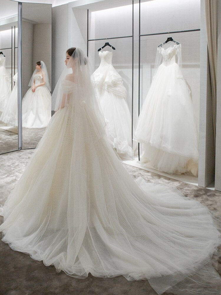runhufu Off The Shoulder Light Wedding Dress 2023 New Bridal Dress Ball Gown Tulle Wedding Dress