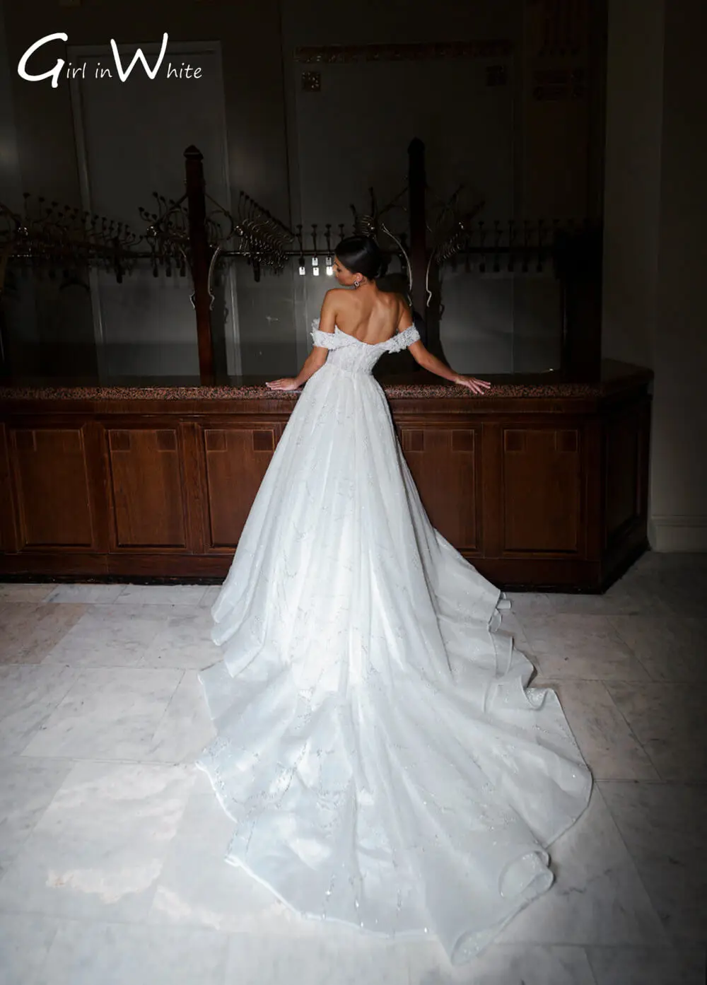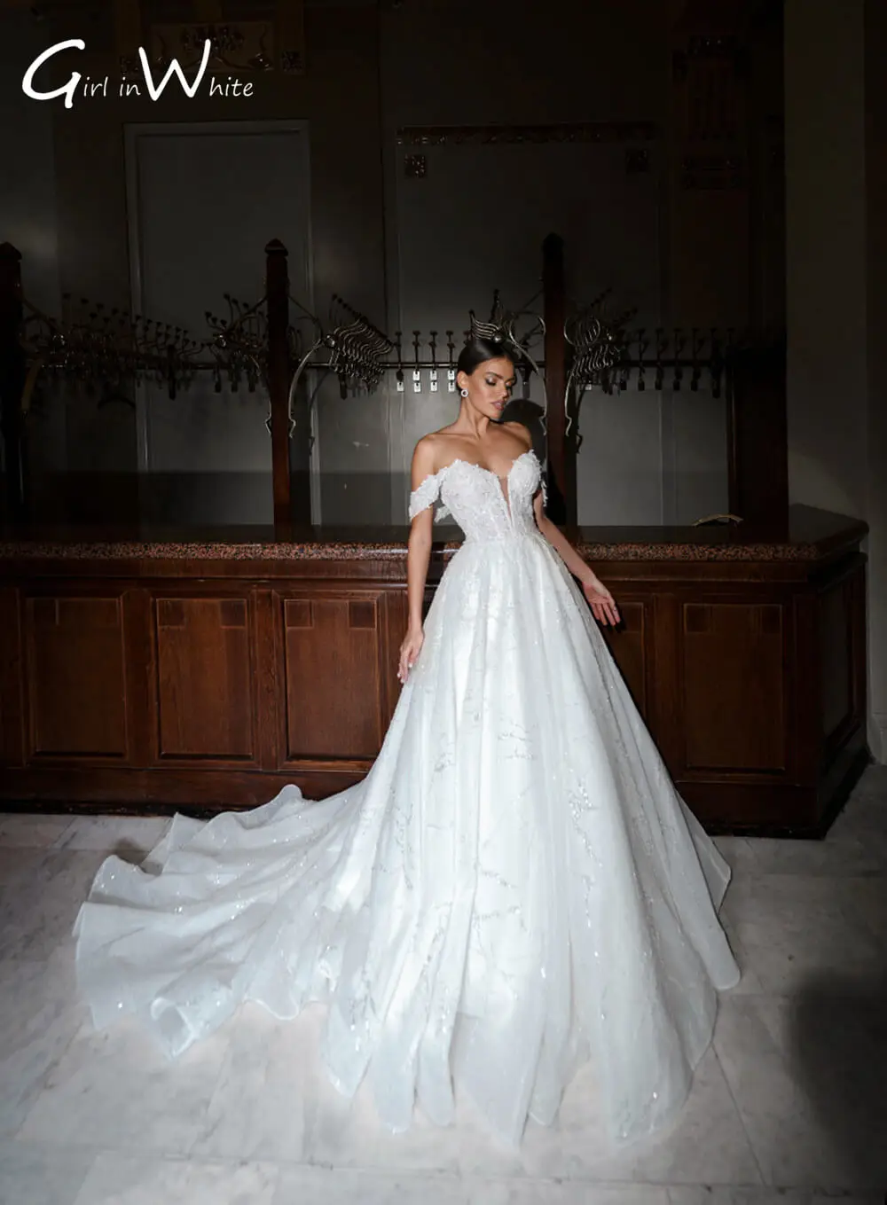 Runhufu Off The Shoulder Wedding Dress Backless Sequined Women Dress For Wedding Gowns V Neck Lace Appliques Vestidos De Novia