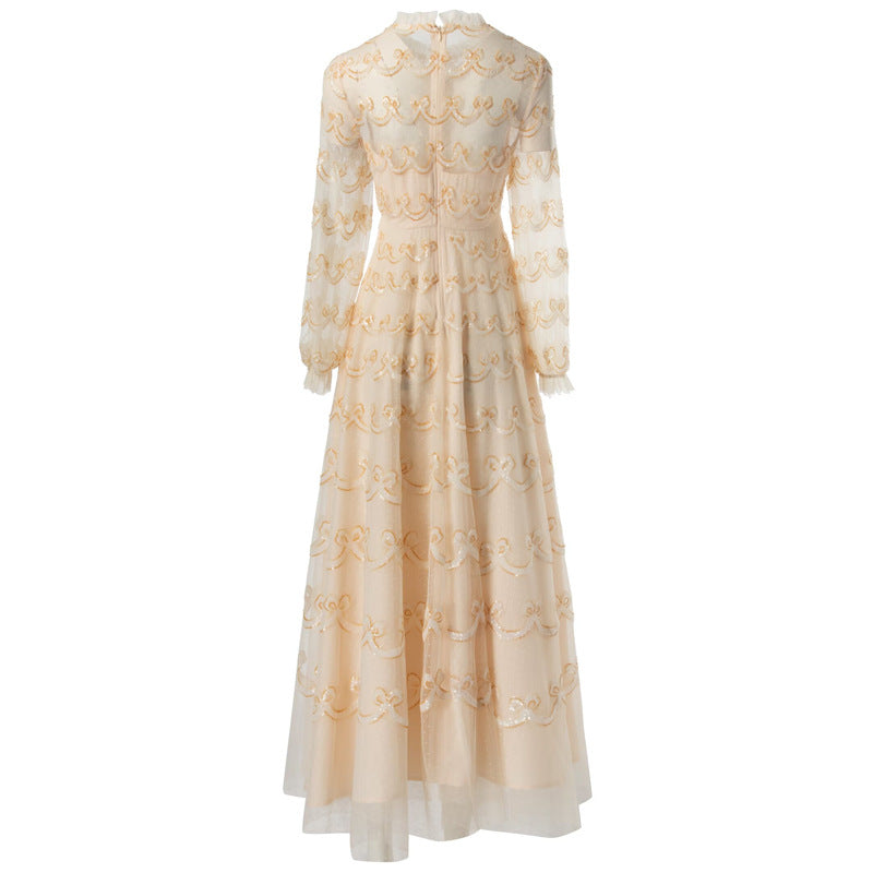 runhufu Perspective Heavy Industry Lily Long-Sleeved Princess Dress Net Yarn Dress New Women's Summer Autumn 2024
