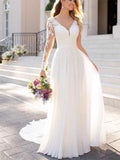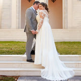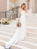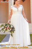 Runhufu Plus Size A Line Wedding Dress For Bride White Chiffon With Sleeves Applique Floor Length Bridal Gowns V Neck 2023 Robes