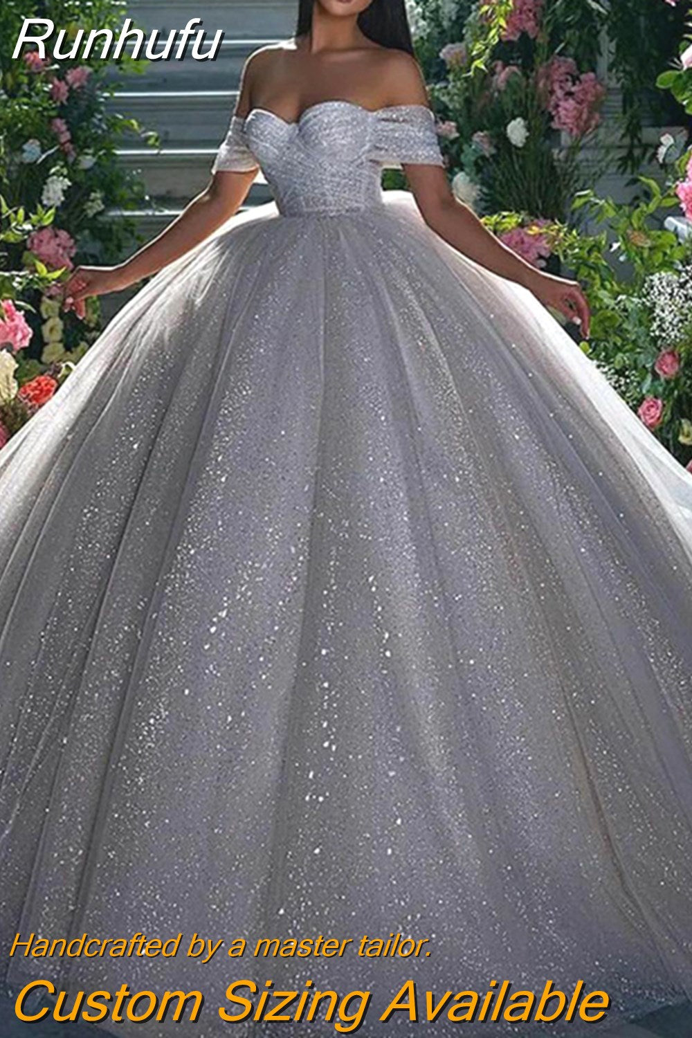Runhufu Princess Wedding Dress Ball Gowns Glitter Tulle Sweetheart Bride Dresses Robe De Mariee Off The Shoulder Wedding Gowns