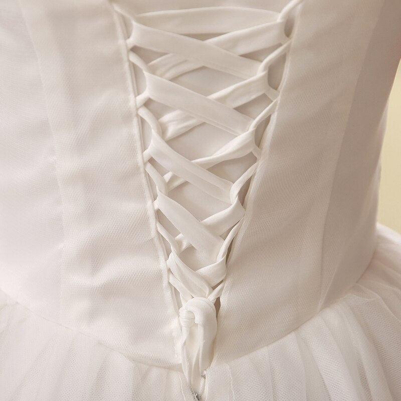It is beautiful, I loved it... it is so beautiful the details of the chest part, I asked for it in white color and it is not very different from ivory. I am size M and I ordered size 12 I had a little loose waist. But it can be adjusted and if it is a little long from the front but I will also adjust it according to my shoes that I will wear that day! But it is beautiful, but I recommend my expectations to make your purchase of your dress.