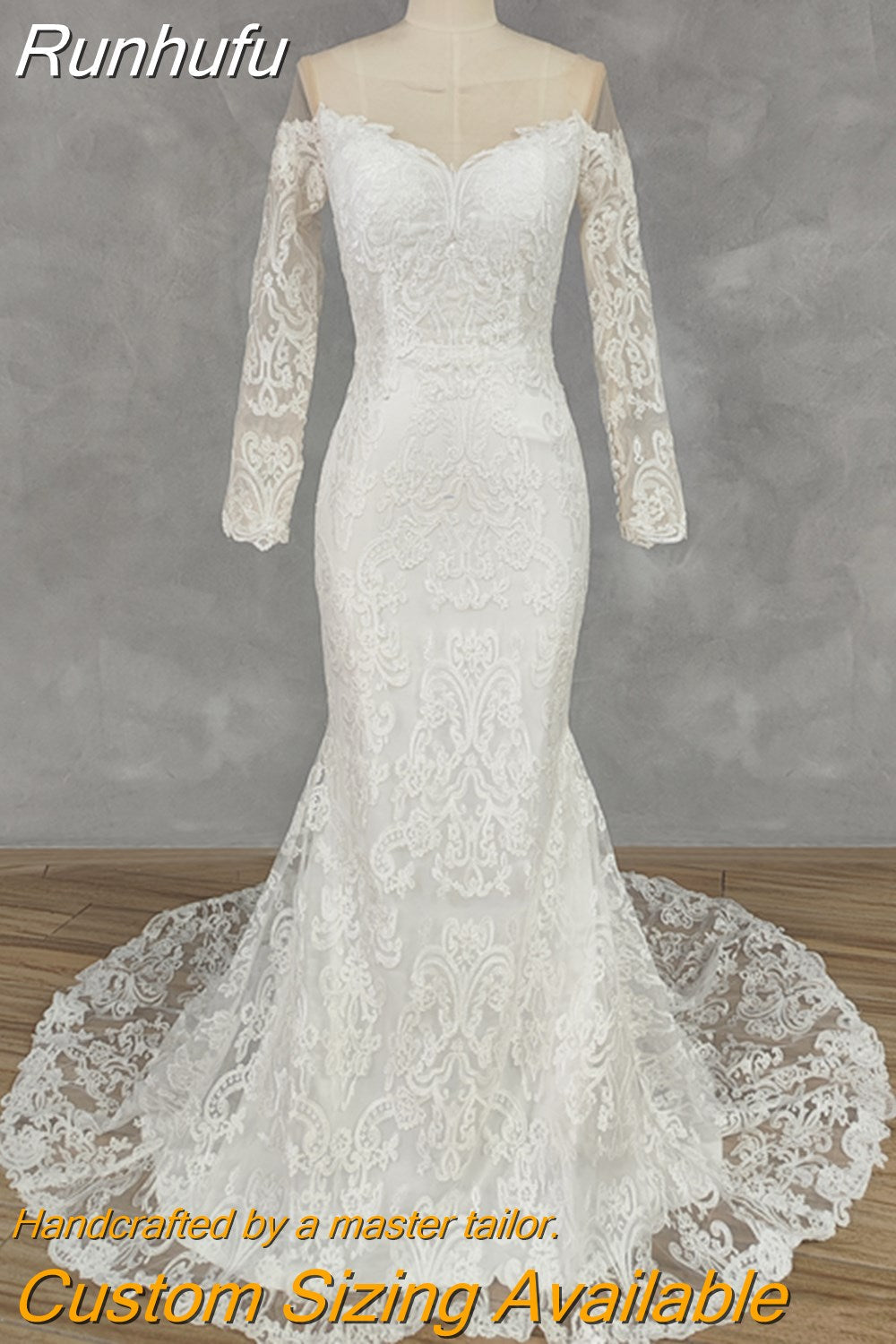 Runhufu Long Sleeves Lace Mermaid Wedding Dress For Bride Satin Bridal Gowns Elegant Plus Size Custom Made Vestido De Novia 2023