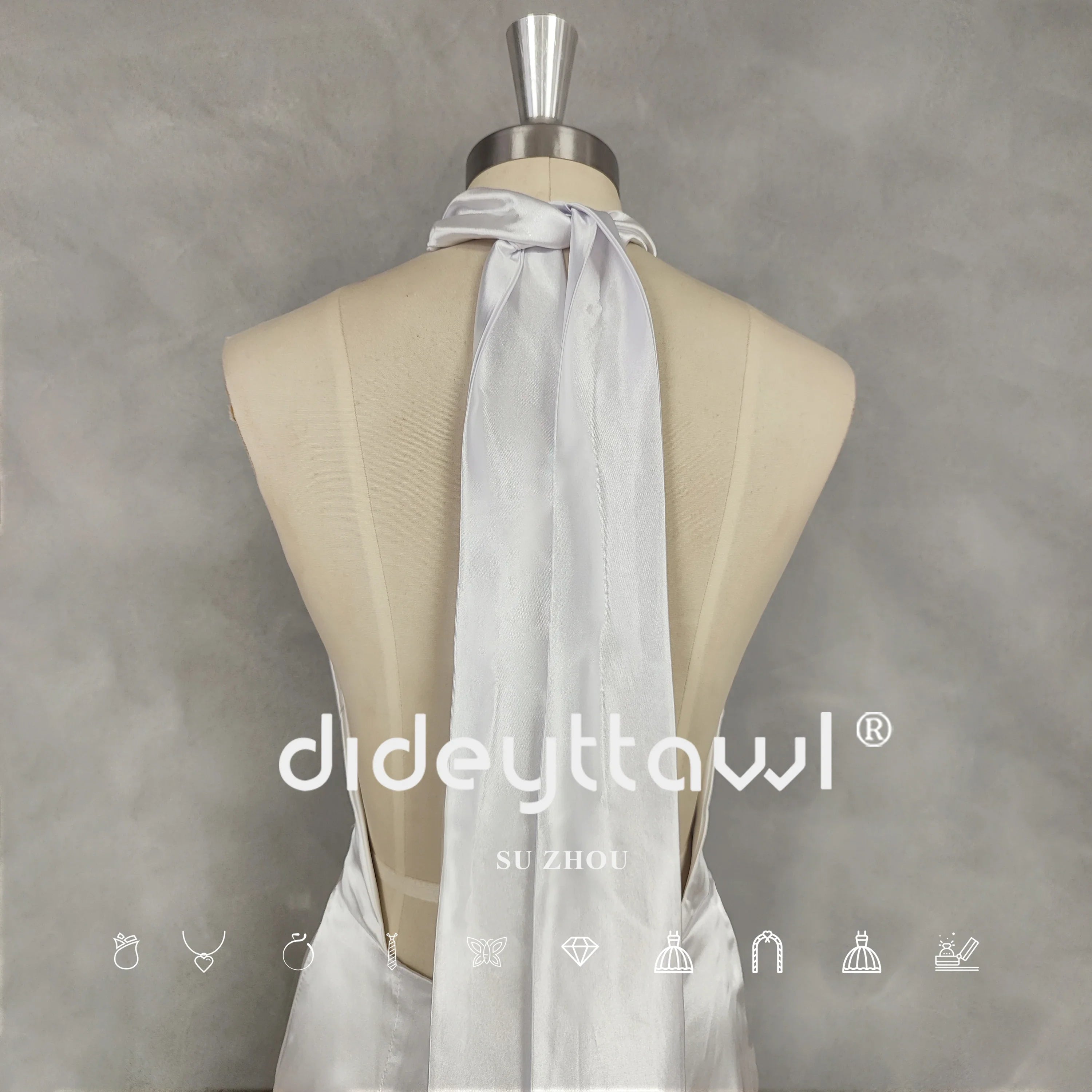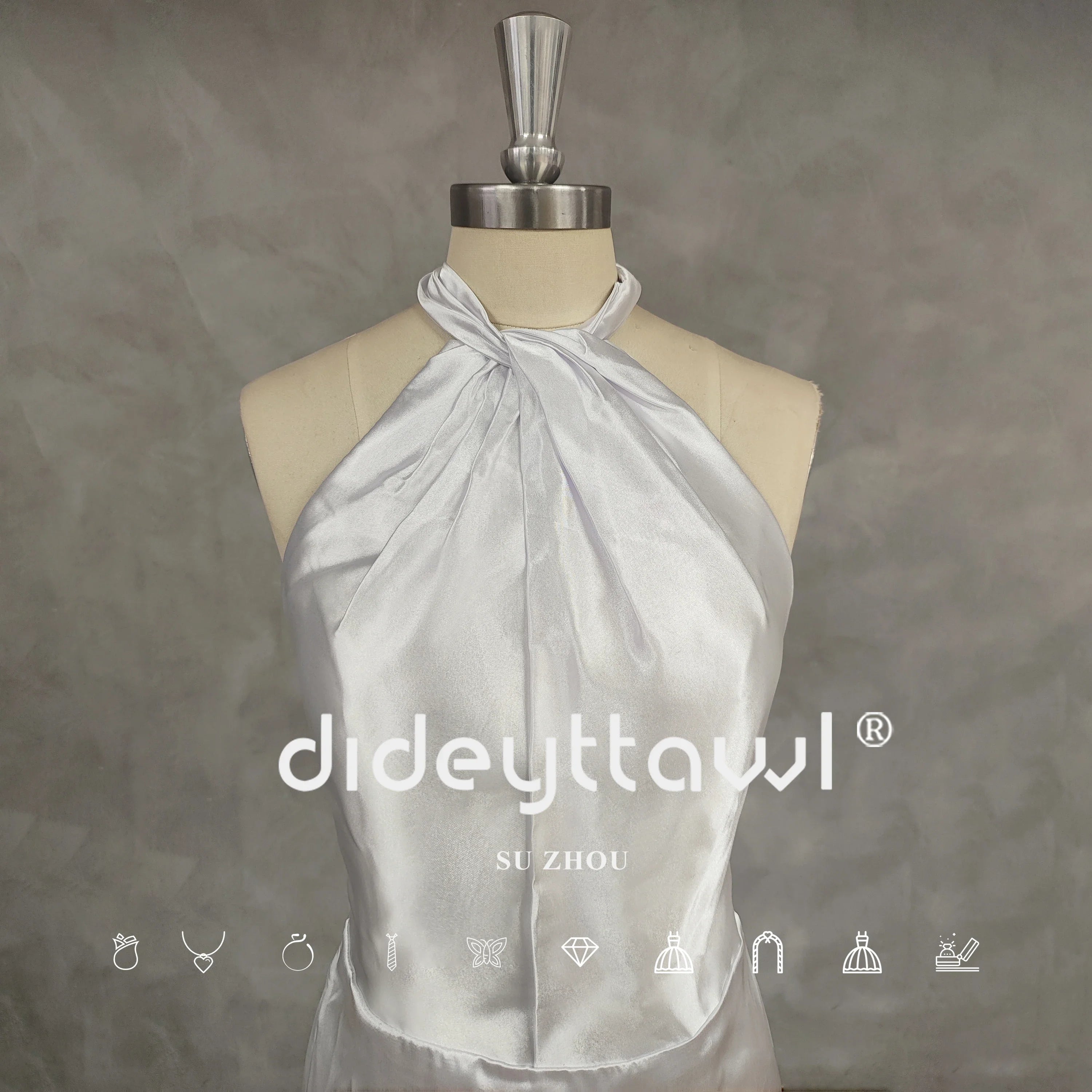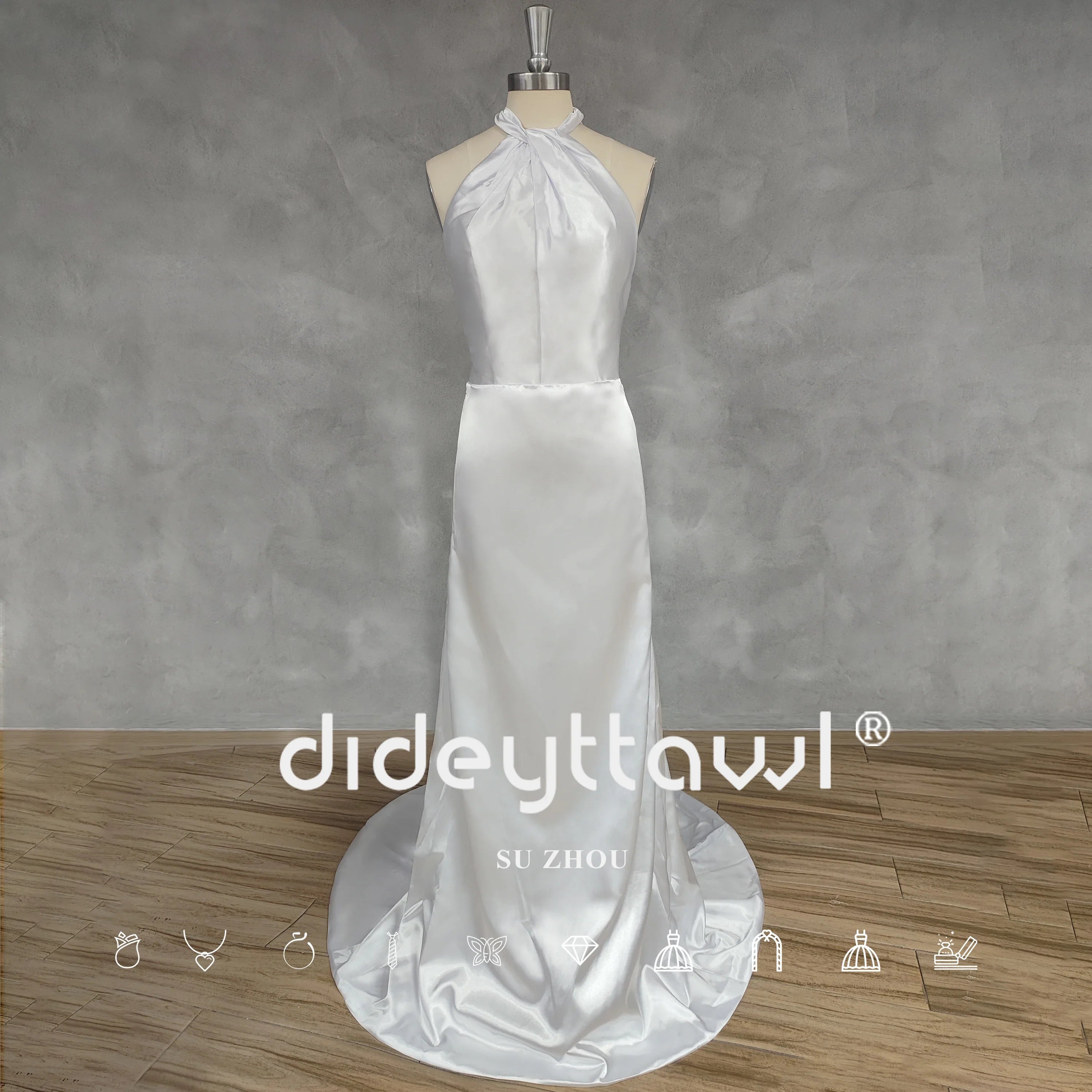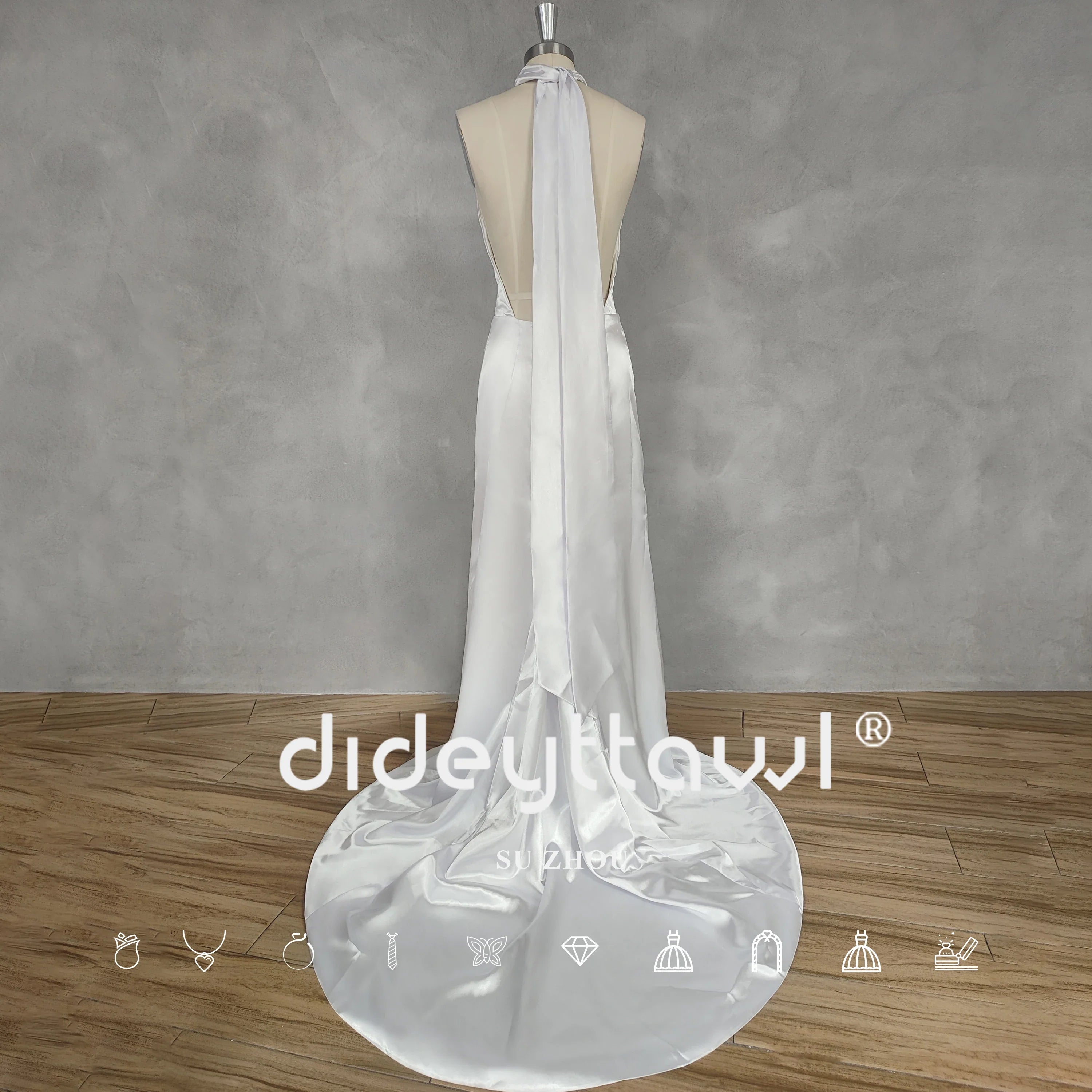 Runhufu Real Picture Simple Halter Sleeveless Satin Mermaid Wedding Dress Open Back Sweep Train Bridal Gown Custom Made